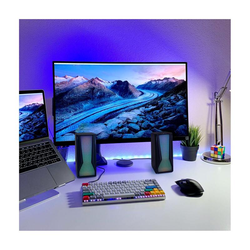 Take your gaming experience to the next level with these dual LED color desktop speakers. From beFree Sound.