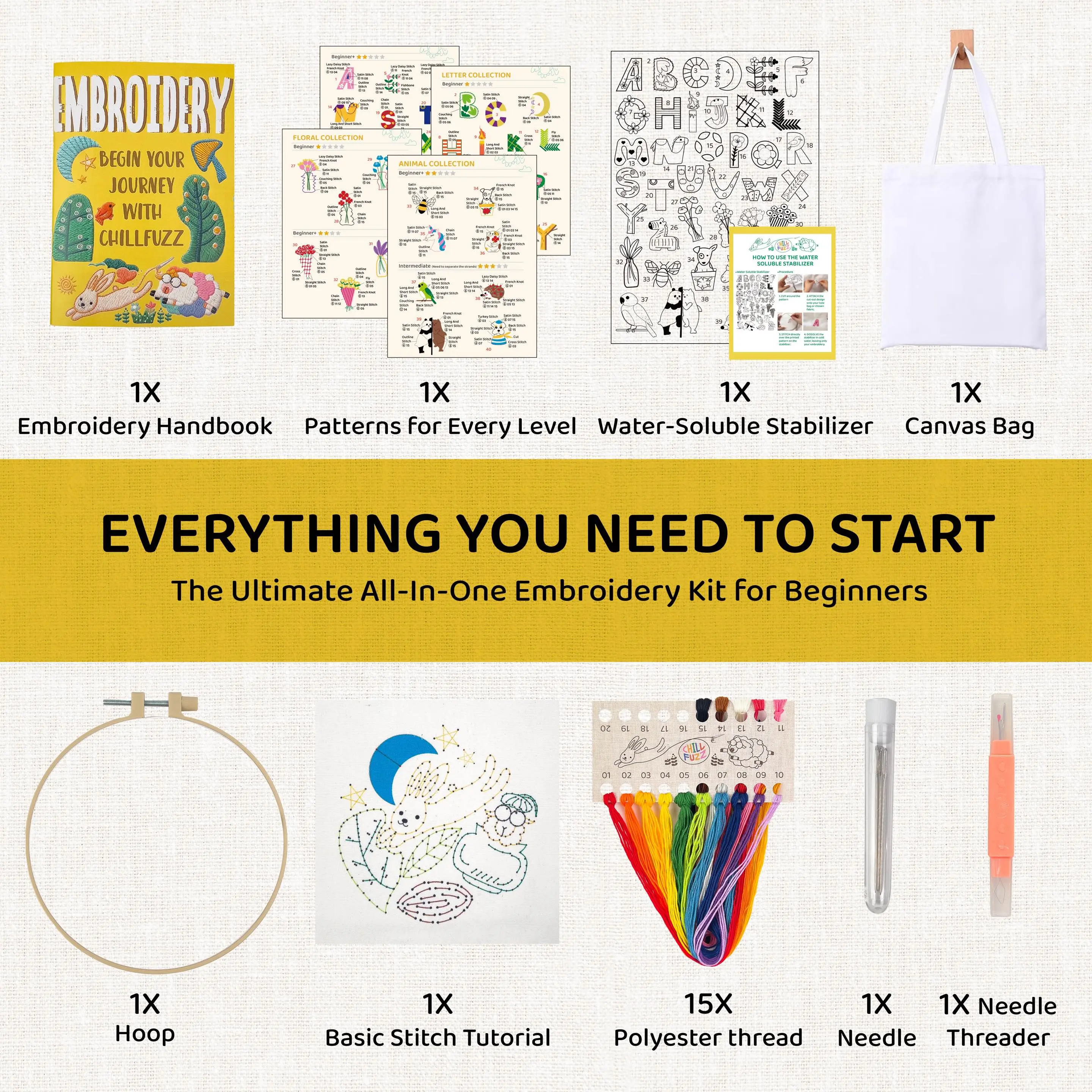 Unleash your creativity with the ChillFuzz Beginner Embroidery Kit. This all-in-one starter set is perfect for handmade, personalized decor. Ideal for first-timers and crafty souls, this set adds a touch of art to your everyday items.