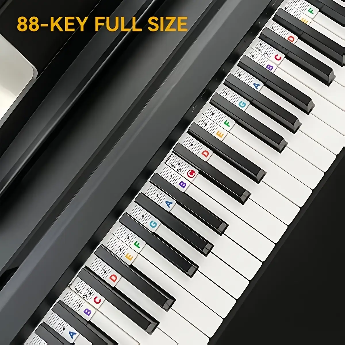 Easy Learn Beginner Piano Notes, 88 Key Full Range, Detachable Reusable Keyboard Guide with Color Labels, Perfect for Scales Practice