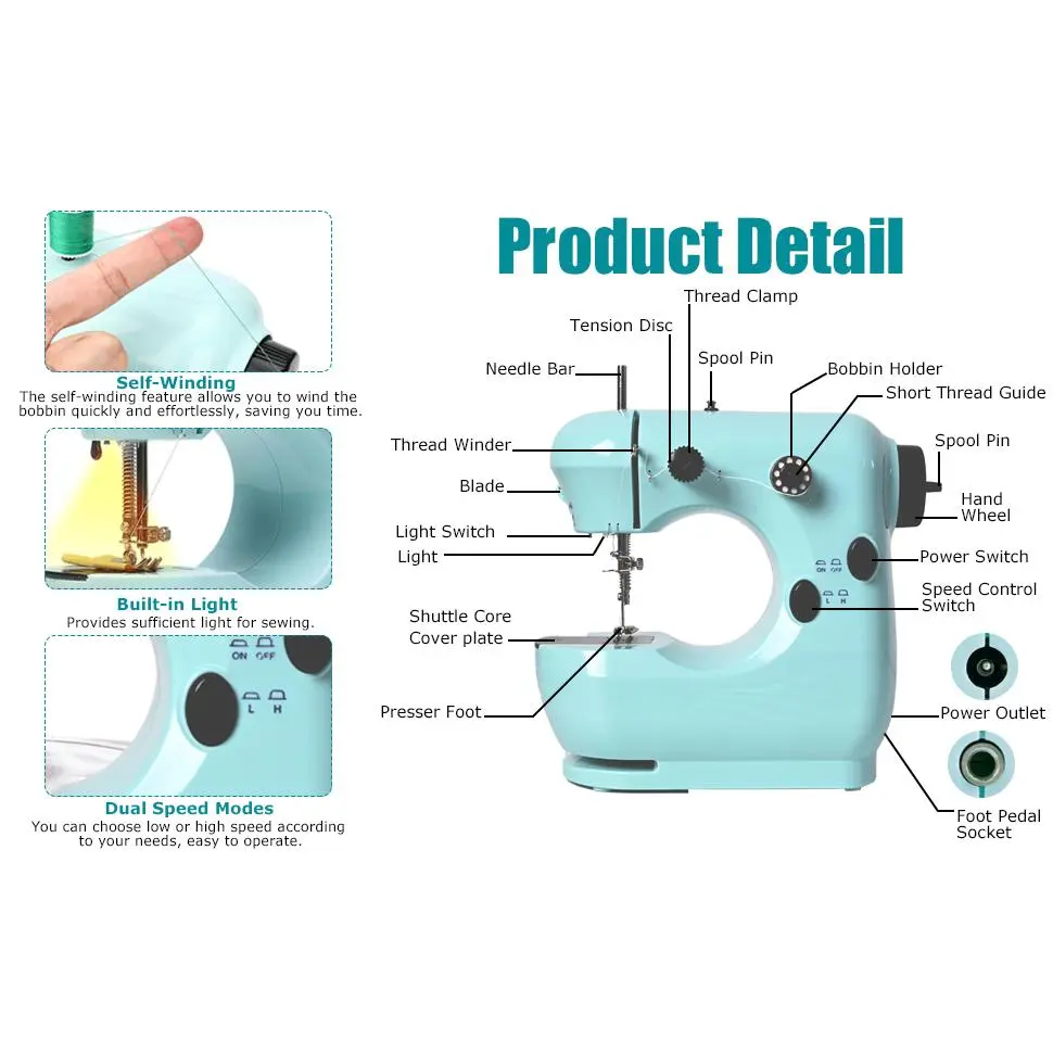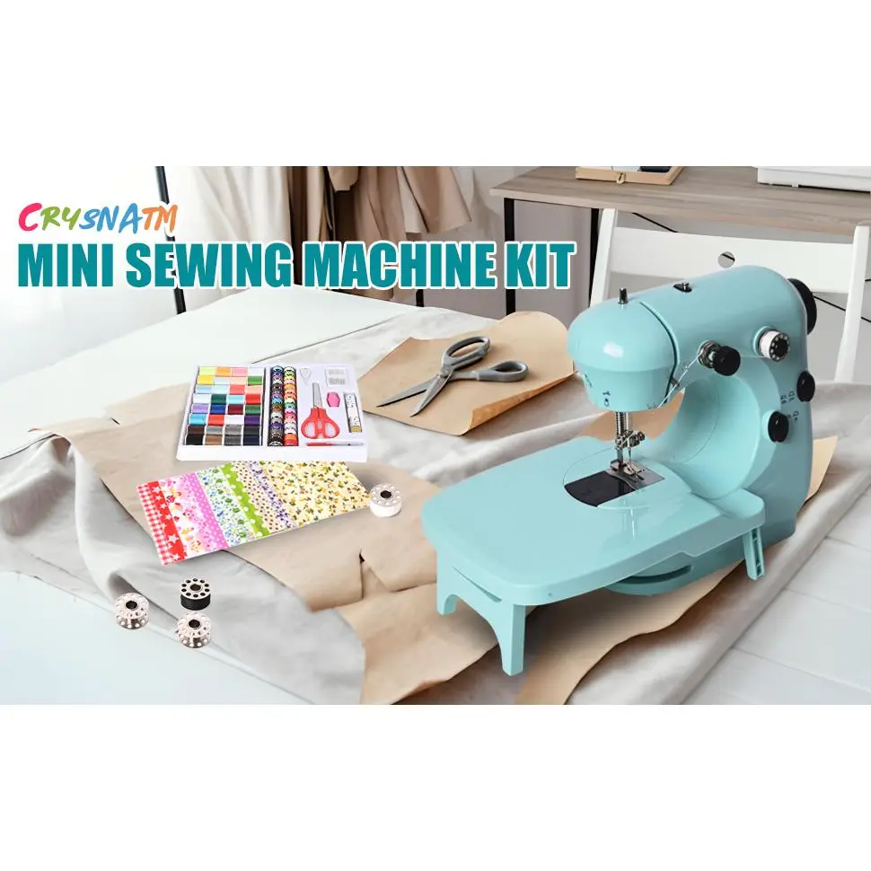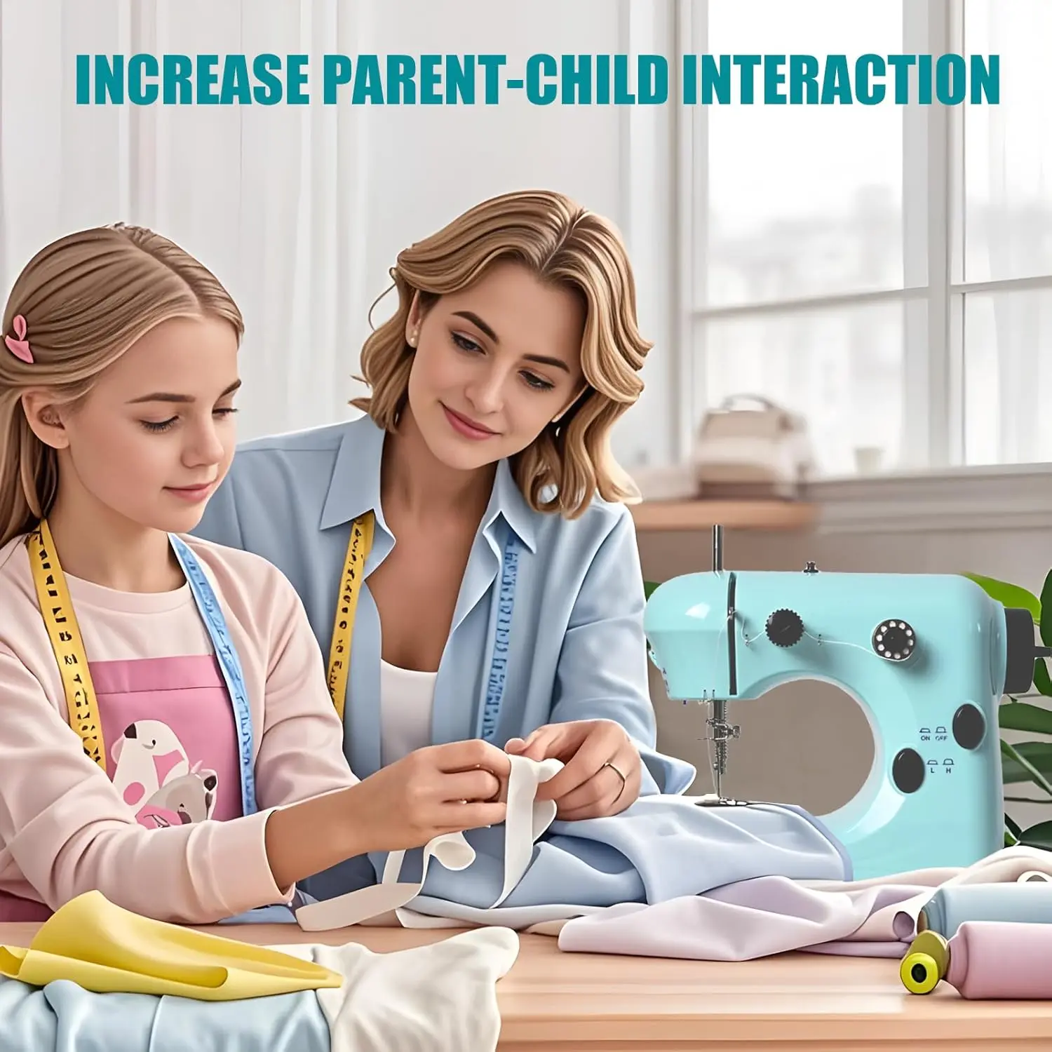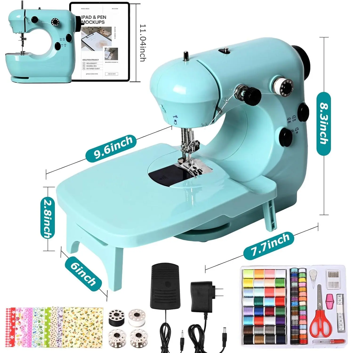 [Safe&Easy to Use] This beginners sewing machine features a modern design that helps safeguard beginners' fingers from getting hurt.With its intuitive on/off switch and adjustable dual-speed settings, you can easily customize your sewing experience.The included user manual and video guides make it simple for everyone in the family to get started with sewing.[Versatile Desigin] This robust sewing machine for kids and adults features multiple functions, including automatic bobbin rewinding and a built-in thread cutter.Its special cuff slot simplifies sewing sleeves and trouser legs.It effortlessly handles 4 layers of denim with its dual-line, knot-free stitching design for exceptional stitching results.Ideal for kids and beginners to kickstart their sewing journey.[Complete Accessory Kit] Our adults and kids sewing machine comes with a comprehensive 127-piece accessory kit,including 50 printed fabrics,1 box Of needles,32 spools of thread ,32 pre-filled bobbins,4 bobbins, measuring tape, scissors, thimble, needle threader, power adapter, foot deal,and instructions.Never worry about missing sewing accessories again.[Extension Table & LED Light] This mini sewing machine comes with an extension table that provides stability, making it easier to create clothing, jeans, pillows, DIY dolls, and more!Plus, the built-in security light ensures clear visibility in low-light conditions, making it ideal for daily sewing tasks, whether for sewing for kids ages 8-12 or for various family sewing projects.[Compact & Great Present Choice] Our mini sewing machine comes fully packaged, its compact design makes it easy to store and transport, while its practicality and versatility make it an excellent gift choice for sewing enthusiasts of all levels, especially as sewing machine beginner.