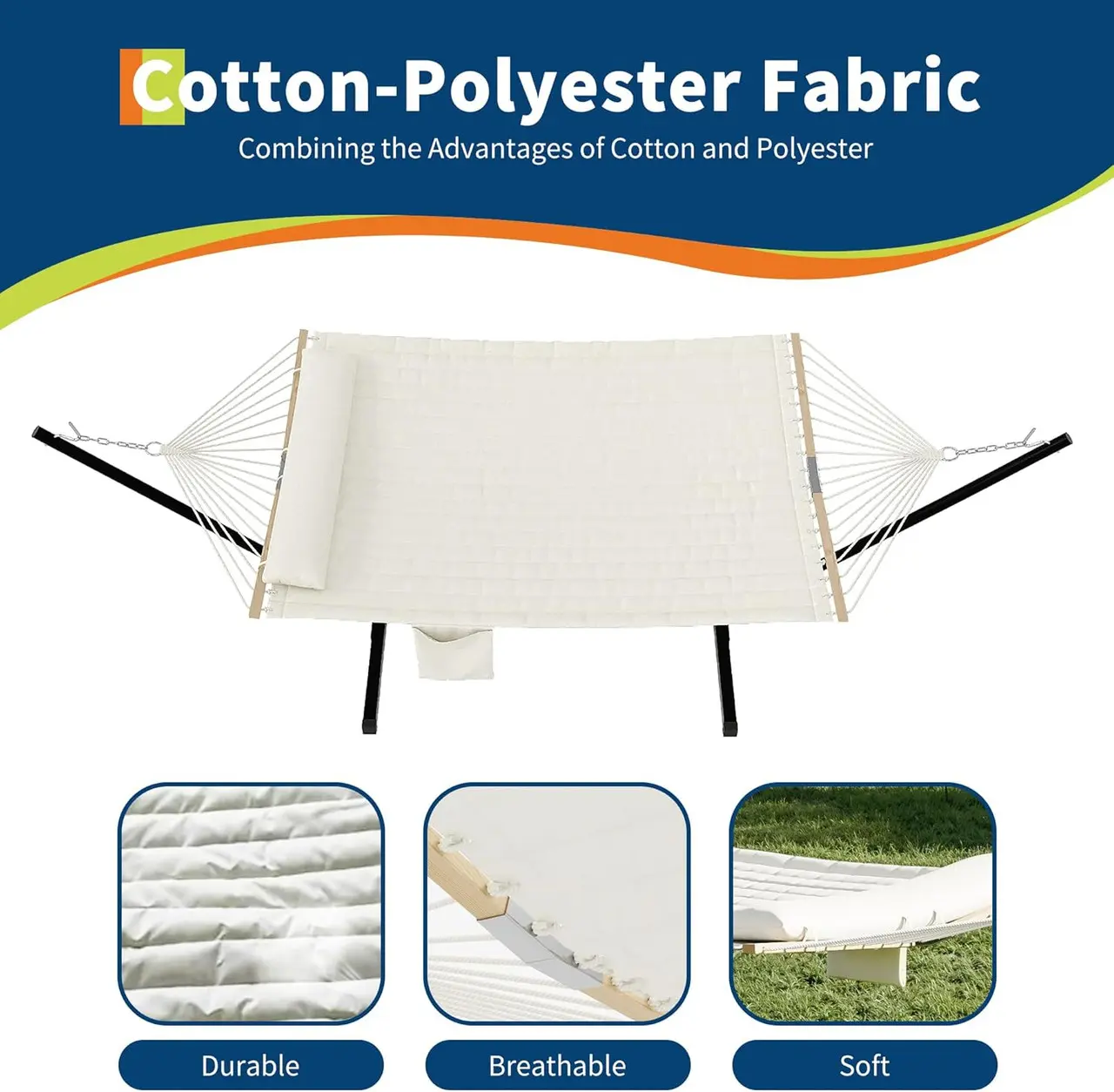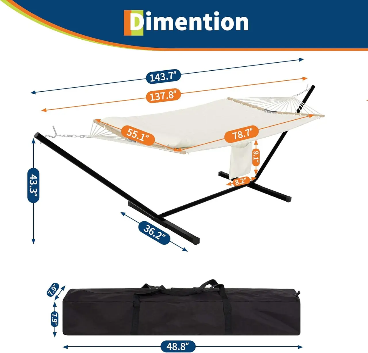 Beige Hammock with Stand, Heavy Duty Portable Steel Frame Hammocks with Quilted Fabric, Outdoor Patio/Camping Hammock with Pillow and Carrying Bag