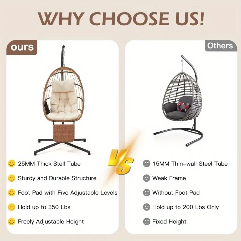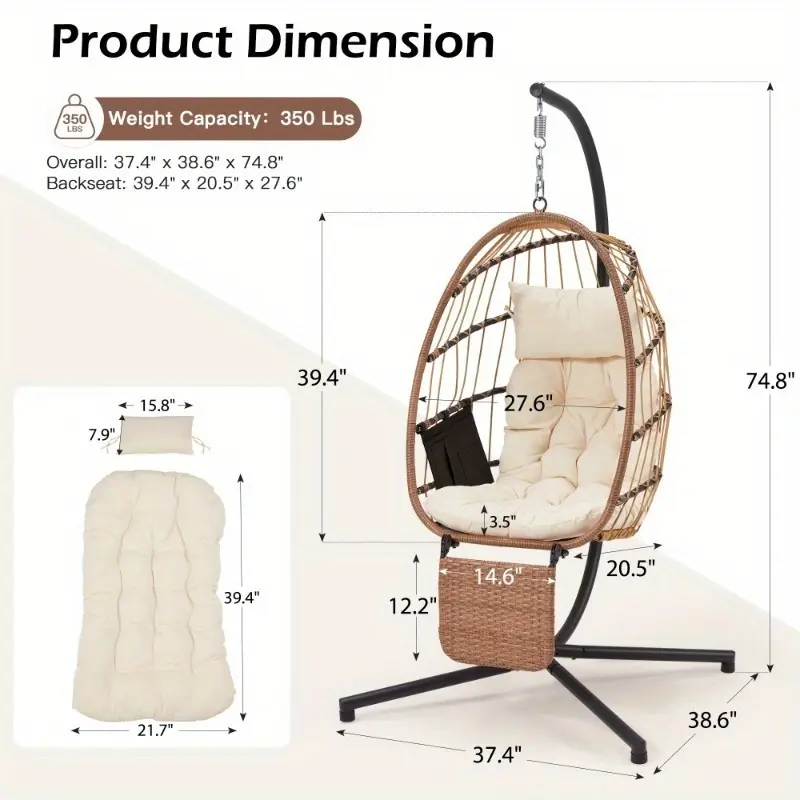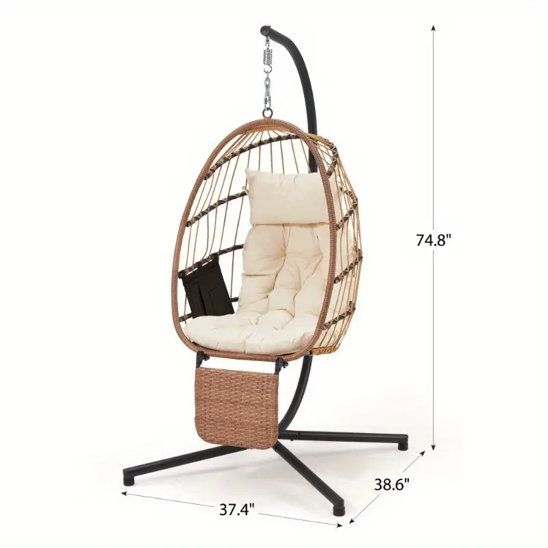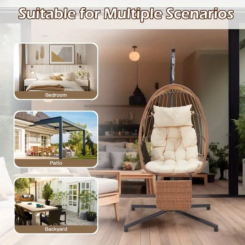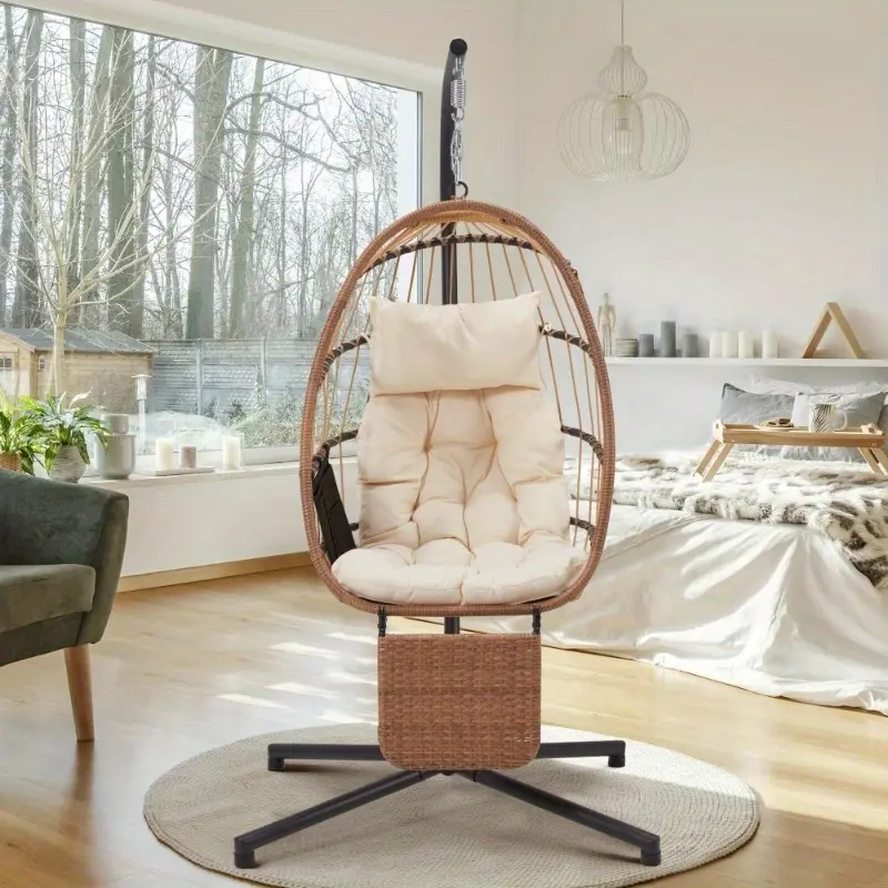 This egg chair with stand is easy to assemble with included hardware and clear instructions. Its foldable design and detachable leg rest make it simple to disassemble and store when not in use, allowing you to save space and easily move it between different areas of your home or patio.