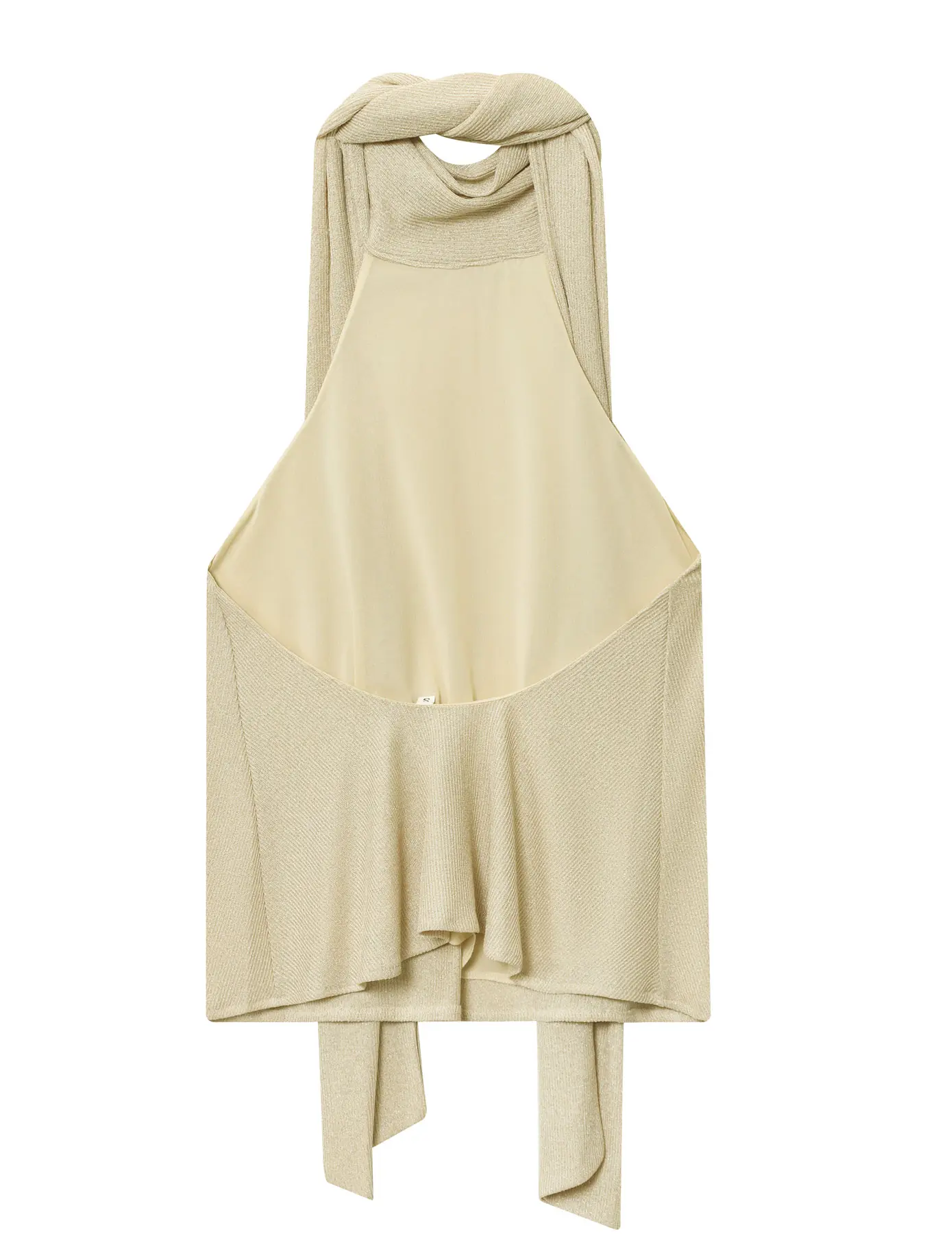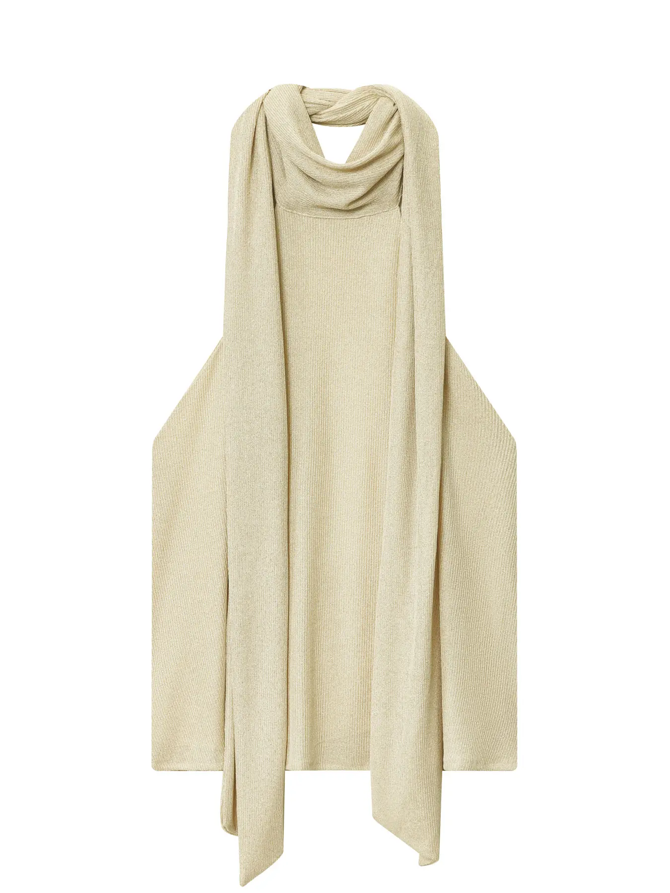 5. Beige Top With Scarf Detail Unique Draped Scarf - Neck Sleeveless Blouse Layered Women's Piece Metallic Thread Tank Top Resort Vests Elegant Spaghetti Strap