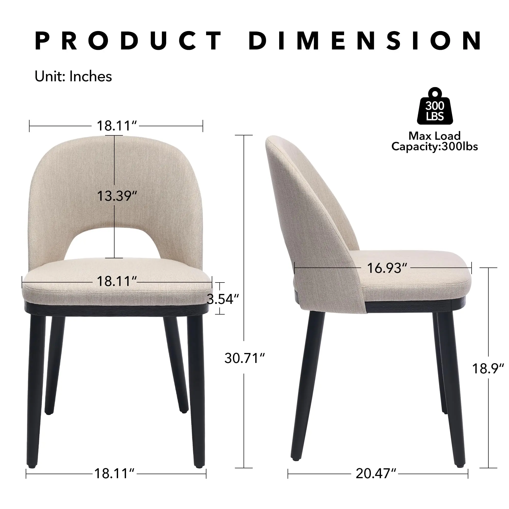 【Ergonomic Design with Plush Cushioning】The dining chairs measure 20.47 “D x 18.11“W x 30.71“H, the seat is 16.2 inches wide and the backrest is 13.38 inches high. The high-density, thick-cushioned seat and ergonomically curved backrest are designed to cradle your body, promoting proper posture and alleviating back strain. Upholstered in soft, breathable linen fabric, these chairs offer cozy support for hours of sitting.
