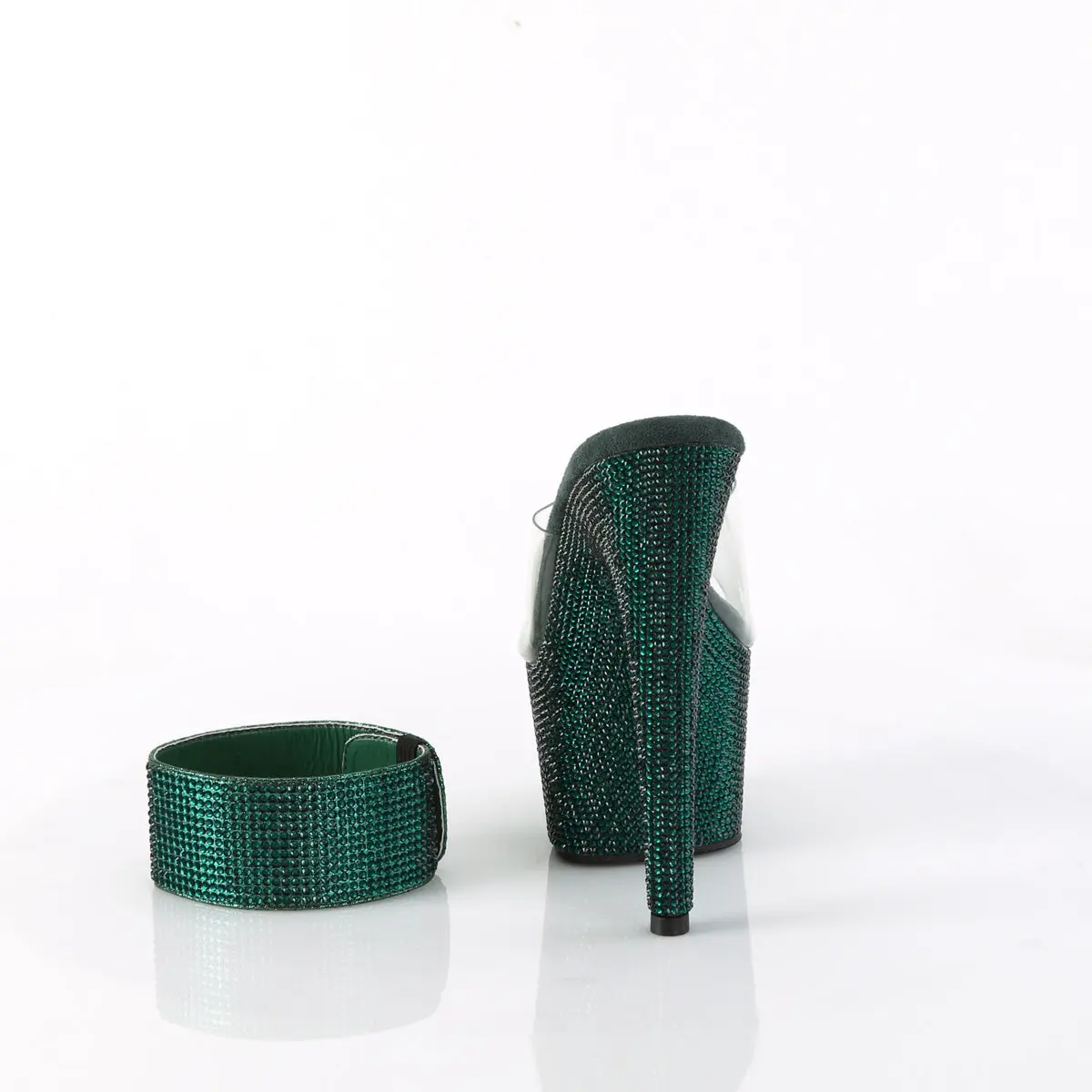 Step into glamour and let your feet shine with the Bejeweled-712RS Slides. These stunning sandals feature a 7-inch heel and a comfortable 2 3/4-inch platform. But what truly sets them apart is the meticulous hand-laid detail of approximately 10,500 rhinestones, adorning the bottom of each slide. Indulge in luxury and turn heads wherever you go with the Bejeweled-712RS - a true masterpiece of dazzling elegance.
