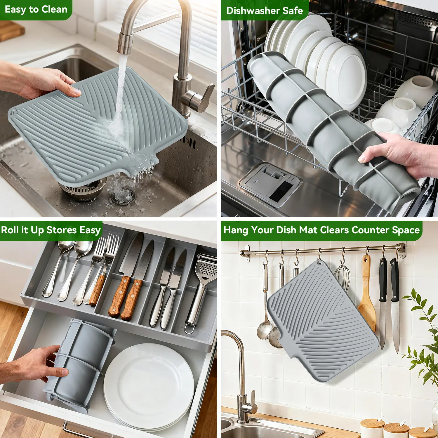 Easy to clean and store: BELIFE silicone drying pad can be directly rinsed or brushed with water. There may be some water stains during use, just rinse with water or wipe with a damp cloth, and it will be as good as new. TIKNIK silicone mat is very soft and is designed with a hanging hole, so it can be rolled up or folded very convenient , or hung directly on the wall for storage, which is easy to save storage space.