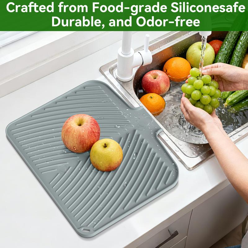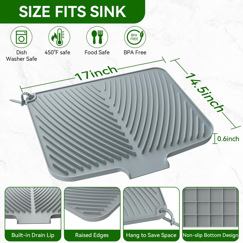 Food-grade silicone material: BELIFE silicone drain mat is made of environmentally friendly food-grade silicone, does not contain BPA, is durable, soft, heat-resistant, non-slip, foldable and not easy to deform, so you have clean and healthy tableware. Enjoy the peace of mind of a cleaner and more hygienic kitchen space every time you use it.