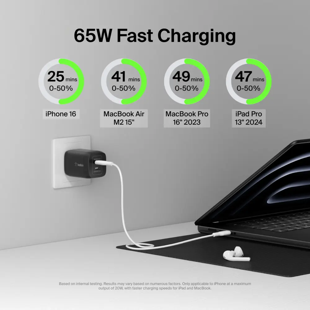 Ever been frustrated waiting forever for your devices to charge? The Belkin BoostCharge Pro Dual USB-C GaN Wall Charger is here to speed things up! With dual USB-C ports, you can fast charge two devices at once—perfect for your phone and tablet or even your Nintendo Switch. Thanks to cutting-edge GaN technology, this charger stays compact and cool, so it won’t clutter your desk or overheat during those marathon charging sessions. It pumps out up to 65W of power when charging a single device, or splits 45W and 20W when charging two simultaneously, giving you the flexibility to power your gadgets efficiently. Plus, the PPS (Programmable Power Supply) tech dynamically adjusts power delivery, optimizing charging for Apple, Samsung, and other compatible devices. Whether you’re at home, in the office, or on the go, its sleek design fits right in. Inside the box, you’ll find the charger itself and a reassuring 2-year warranty. Ready to ditch slow charging and keep your devices powered up quickly? Grab the Belkin BoostCharge Pro and experience fast, safe, and smart charging every day!
