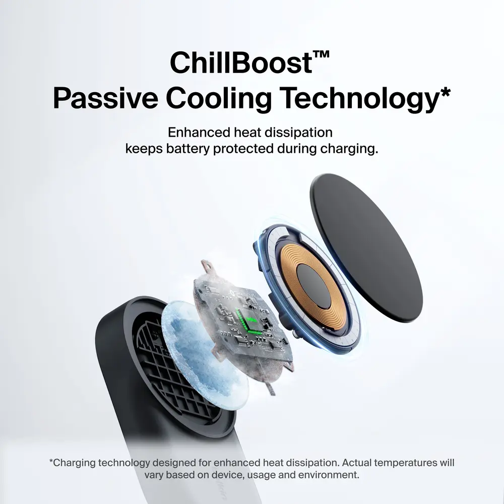 ·ChillBoost™ passive cooling technology is engineered to reduce heat†† during fast charging, to protect your battery