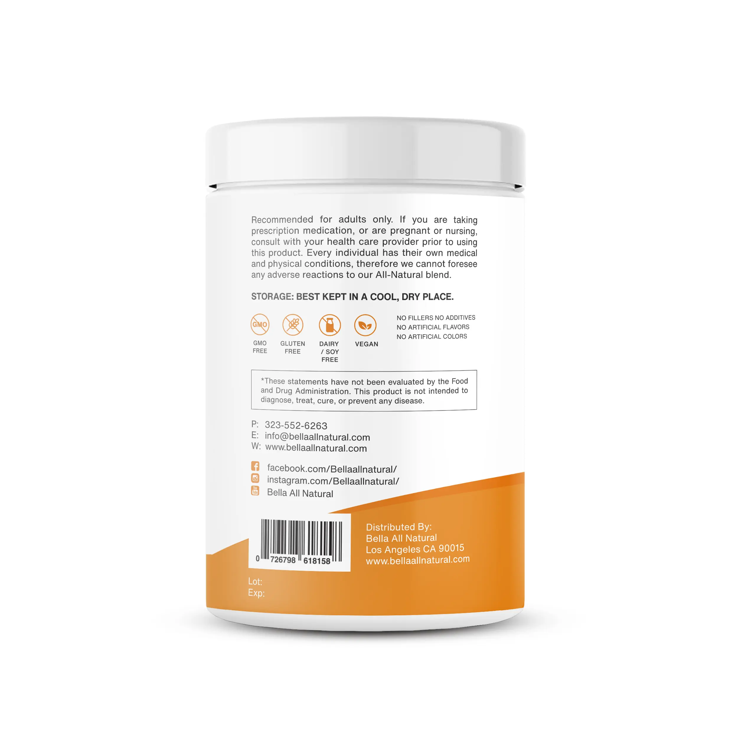 Abastécete con el paquete de 3 de Bella All Natural Cúrcuma con Jengibre. Esta bebida diaria fácil de mezclar es una forma simple de agregar dos ingredientes clásicos de bienestar a tu rutina. Muchas personas usan la cúrcuma y el jengibre para apoyar la comodidad diaria, la digestión y el bienestar general como parte de un estilo de vida balanceado. Ideal en bebidas calientes, smoothies o recetas.