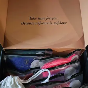 Just got these today. They included holiday gift labels and each sponge is individually wrapped in a nice zip pouch. They are much softer than expected and quite bouncy. Great stocking stuffer. Can’t wait to try it.