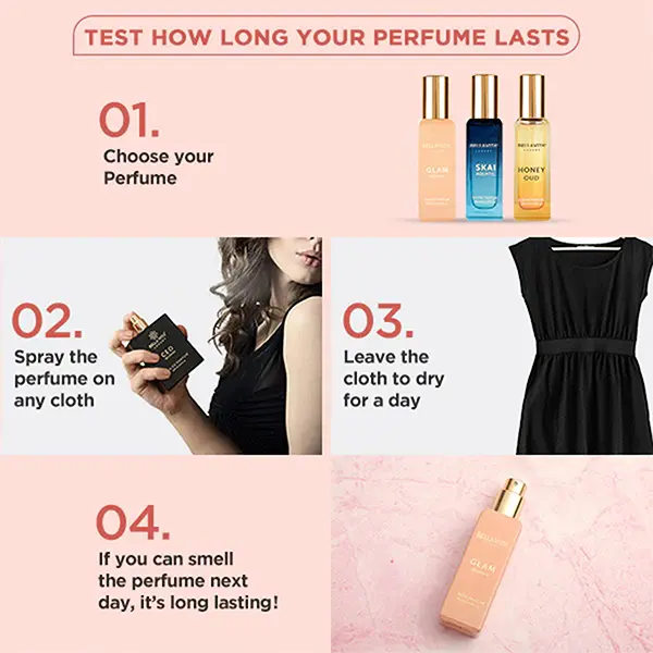 Bellavita Luxury Glam & Date Perfume Combo Set includes two 20ml mini Eau De Parfum bottles. Choose from Glam – Jasmine, White Honey, Rose & Cedar or Date – Pink Pepper, Red Fruit & Jasmine. Both sets offer fruity, floral, and spicy notes. Perfect for those who love long-lasting, portable fragrances. Vegan and cruelty-free, these perfumes are ideal for women seeking ethical beauty products.