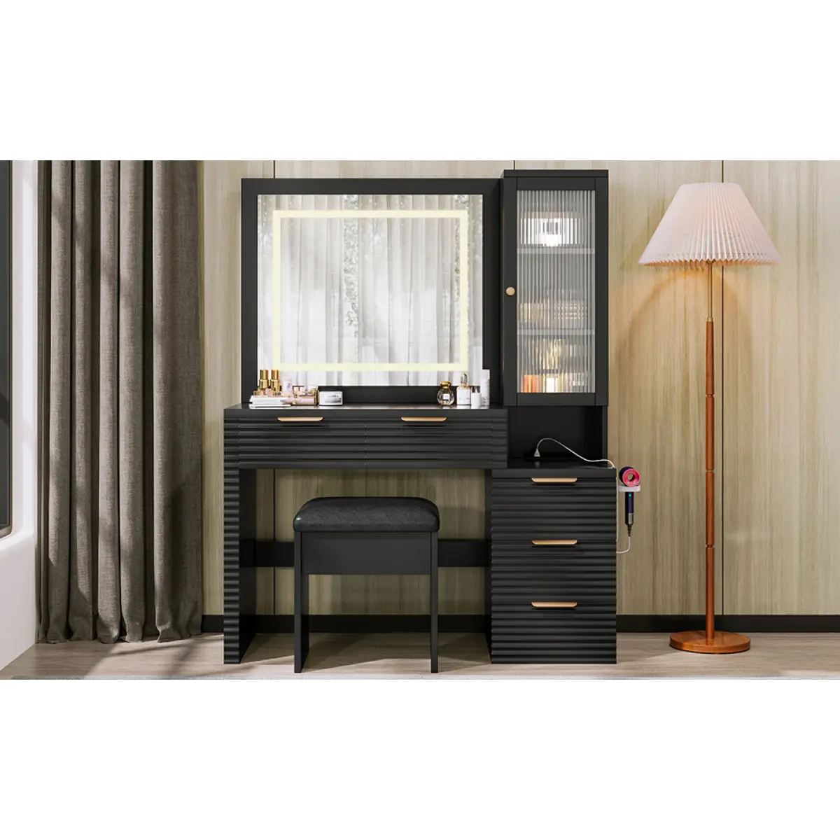 ![[Bellemave]43.5" Vanity Desk with Mirror and Lights, Fluted Makeup Vanity with Charging Station, 5 Drawers and a Glass Door Cabinet, Dressing Table set with Hairdryer Holder and Storage Stool for Bedroom, Black [Bellemave]43.5" Vanity Desk with Mirror and Lights, Fluted Makeup Vanity with Charging Station, 5 Drawers and a Glass Door Cabinet, Dressing Table set with Hairdryer Holder and Storage Stool for Bedroom, Black](https://p16-oec-general.ttcdn-us.com/tos-maliva-i-o3syd03w52-us/c53712926f214fc08b7196cbff9501fd~tplv-fhlh96nyum-origin-jpeg.jpeg?dr=12178&t=555f072d&ps=933b5bde&shp=a3510d86&shcp=6ce186a1&idc=useast5&from=2739998086)