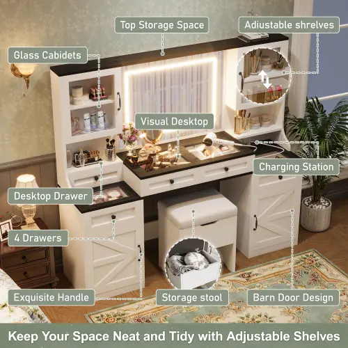 ![[Bellemave]61.5" Farmhouse Vanity Desk with Mirror and LED Lights, Dressing Table with 5 Drawers and 4 Cabinets, Makeup Vanity Table Set with Glass Visual Desktop and Cushion Stool, for Bedroom [Bellemave]61.5" Farmhouse Vanity Desk with Mirror and LED Lights, Dressing Table with 5 Drawers and 4 Cabinets, Makeup Vanity Table Set with Glass Visual Desktop and Cushion Stool, for Bedroom](https://p16-oec-general-useast8.ttcdn-us.com/tos-useast8-i-rt0ujvrtvp-tx2/4ff66c163d734f2a853b84490f4677b2~tplv-fhlh96nyum-origin-jpeg.jpeg?dr=12178&t=555f072d&ps=933b5bde&shp=a3510d86&shcp=6ce186a1&idc=useast5&from=2739998086)