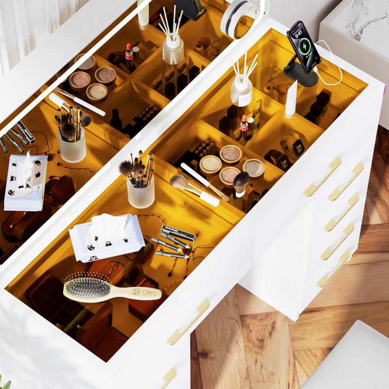 ·10 Drawers: The vanity with storage offer you enough space to store all of your beauty essentials, such as makeup brushes, lipsticks, eyeliner, and more.