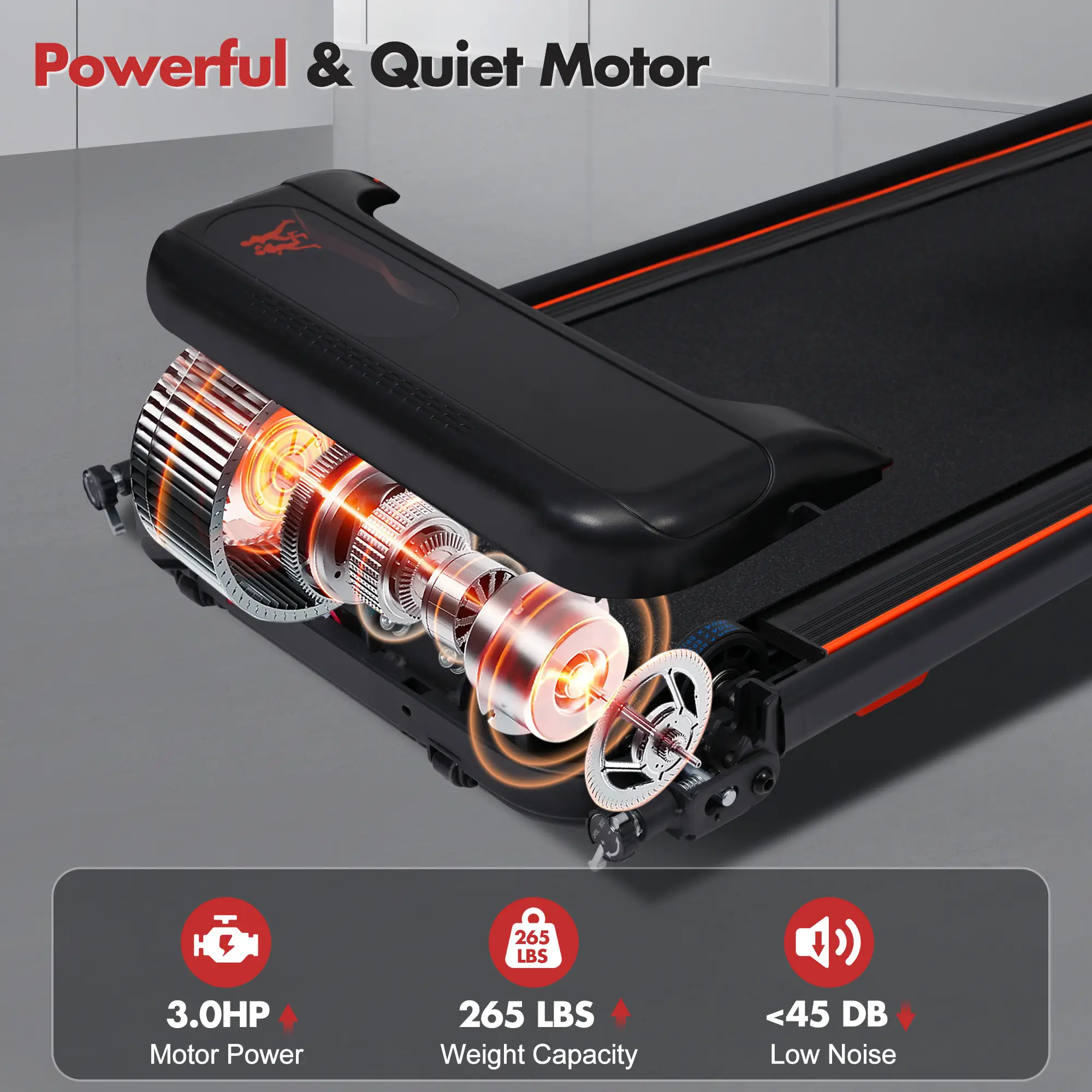 ·【Powerful 3.0HP Motor – Quiet Yet Strong】Equipped with a 3.0HP motor, the treadmill supports up to 265 lbs and offers speeds from 1–8 MPH, perfect for walking, jogging, or running. The built-in cooling system ensures quiet operation—ideal for home or office use, so you can stay active no matter the weather.