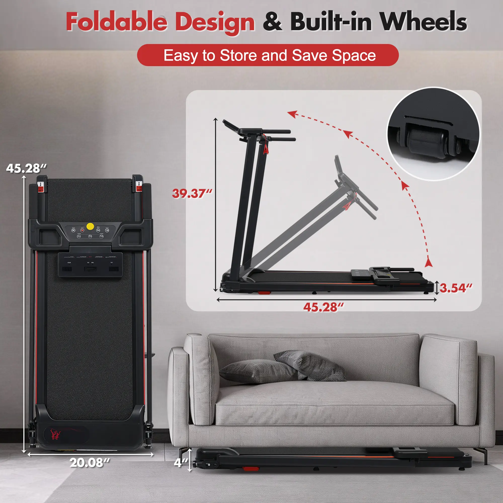 ·【6-in-1 Foldable Treadmill for Home】: The folding treadmill speed range varies from 1 to 8 mph, suitable for at least six different scenarios, including fat-burning mode, walking mode, running mode, working mode, family sharing mode, and training. Replacing the traditional treadmills and walking pad, it achieves new experience, freedom from exercise restrictions, allowing you to continue exercising in rainy days, winter and inclement weather. Perfect for home, office, and gym.