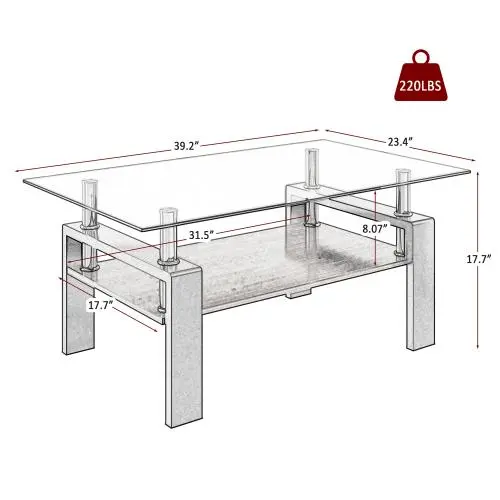 ·2.Sleek Tempered Glass Surface: This coffee table boasts a modern tempered glass top that not only exudes style but is also effortless to clean, perfect for daily use.