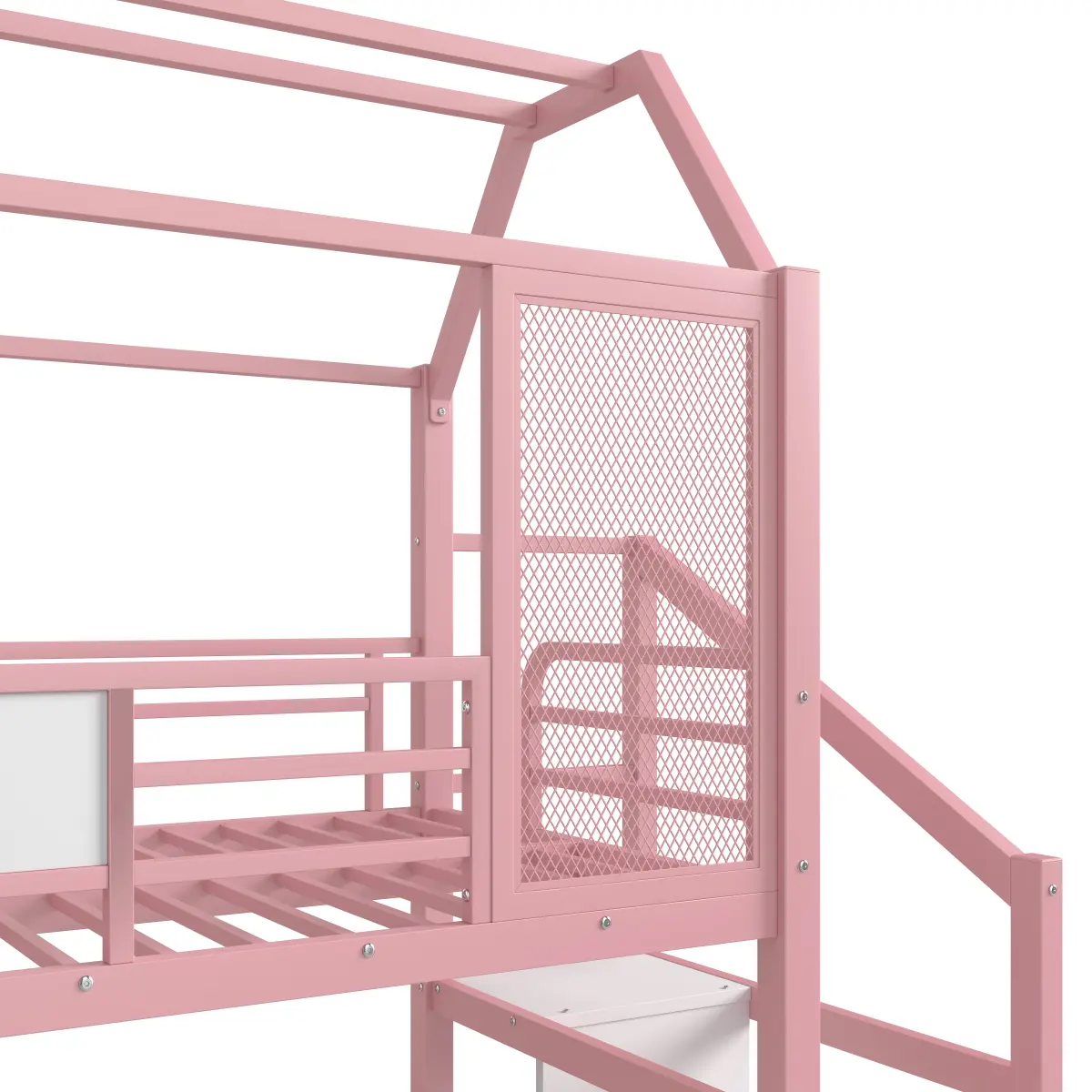 ·[Easy Assembly & Stylish Look]Finished in a charming pink, this house loft bed adds warmth and cheer to any kid’s room.With step-by-step instructions and all tools included, setup is simple and hassle-free, giving families a functional and stylish bed in no time.