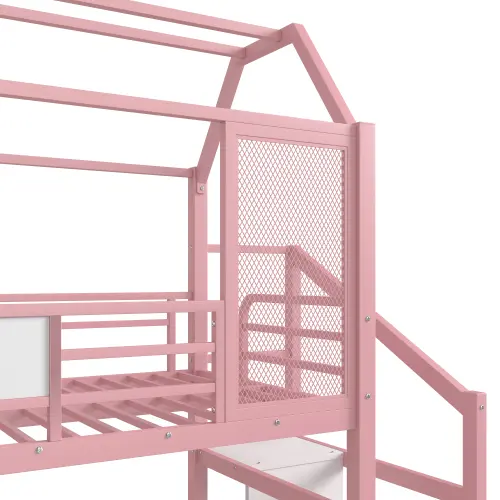 Product Type - Metal House BedColor-pinkSize - TwinMaterial - Metal + MDFOverall Product Dimension - 112.60"L*41.73’’W*78.94"HOverall Product Weight - 139.12 LBSWeight Capacity - 500LBSRecommend Mattress Thickness - 6''Number of Package - 2Package Dimension & Weight - Please refer to the SpecificationLevel of Assembly - Full Assembly NeededEligible for Hardware Packs - YesCountry of Origin - ChinaNote - All the pictures are taken by actual samples, slight chromatic aberration may occur due to lighting or display.