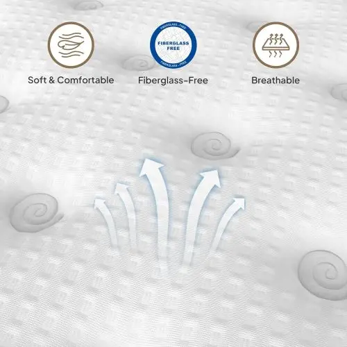 ·Gel Memory Foam Hybrid Mattress: Experience ultimate comfort with our cooling gel-infused memory foam layer in this queen mattress. Designed to regulate body temperature, this fiberglass-free mattress ensures a cozy and worry-free sleep environment.