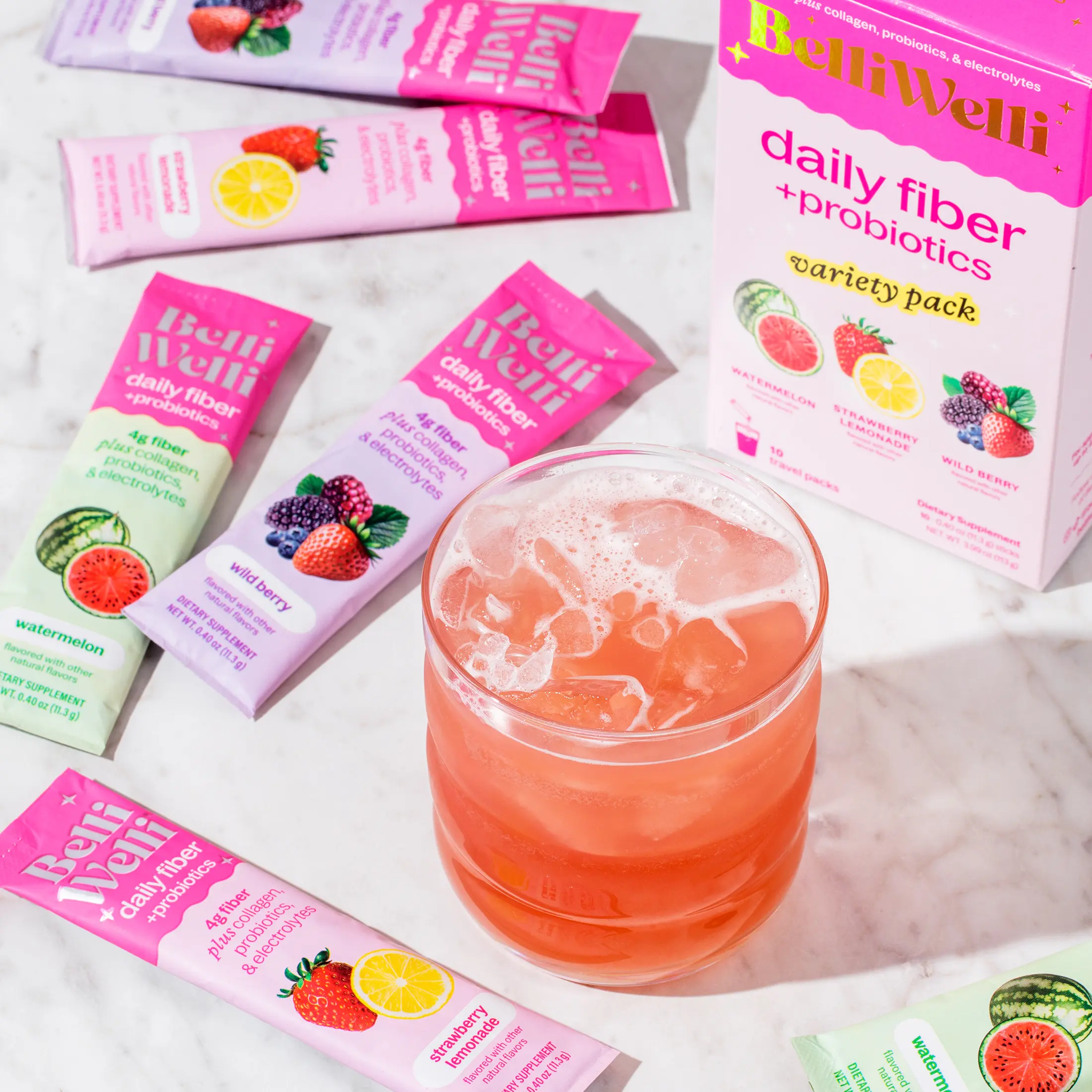 With BelliWelli single-serve packets, you can enjoy all the benefits of daily fiber, collagen, electrolytes, and probiotics without the hassle. Perfect for travel, work, or just a busy day, these packets are convenient and easy to use. Simply mix with water and get a balanced boost wherever you are!