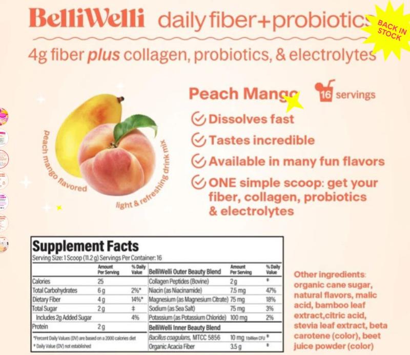 5. BelliWelli Daily Fiber + Probiotics - Peach Mango