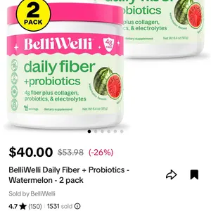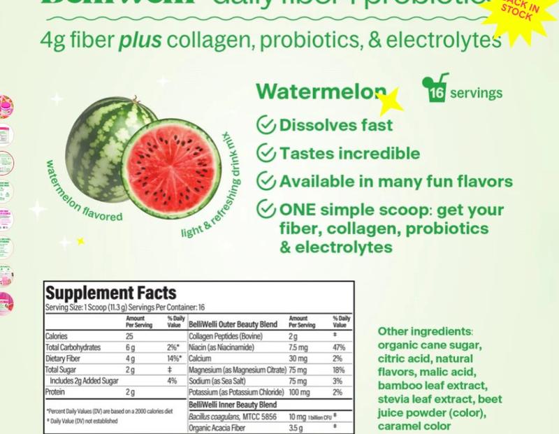 5. BelliWelli Daily Fiber + Probiotics - Watermelon - 2 pack