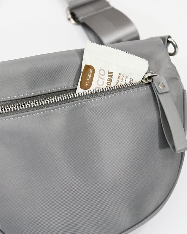 ·Comfortable mid size grey belt bag to hold what you need at a hand's reach without the bulk of a purse or tote