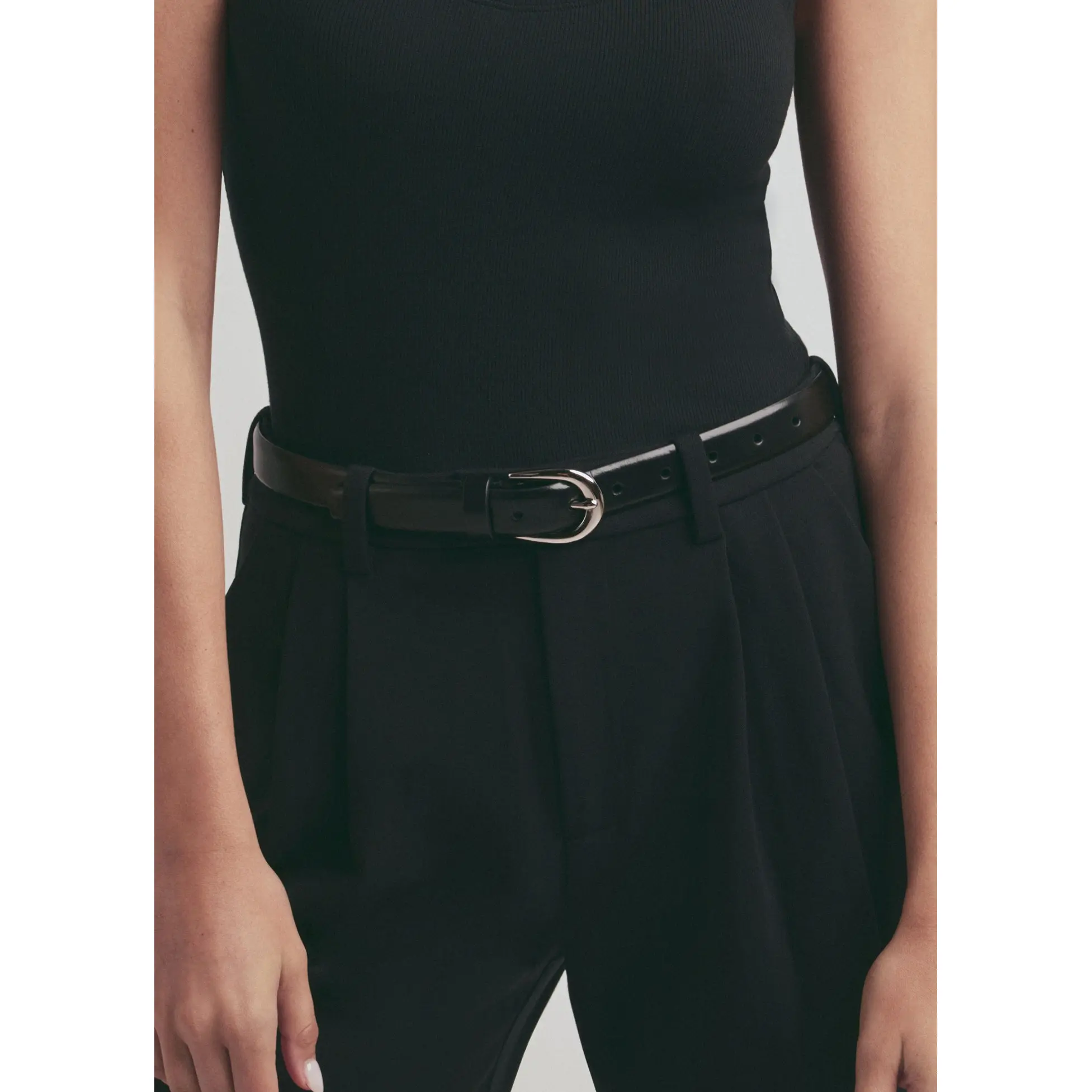 With refined, smooth polished leather, The Favorite Belt makes it a cinch to accessorize your wardrobe with chic sophistication. This 25mm black belt has a sleek finish with feather edge detailing and polished hardware for a timeless look. The seven prong holes make it easy to adjust sizing so you can wear it slung at the hips or buckled at your waist.