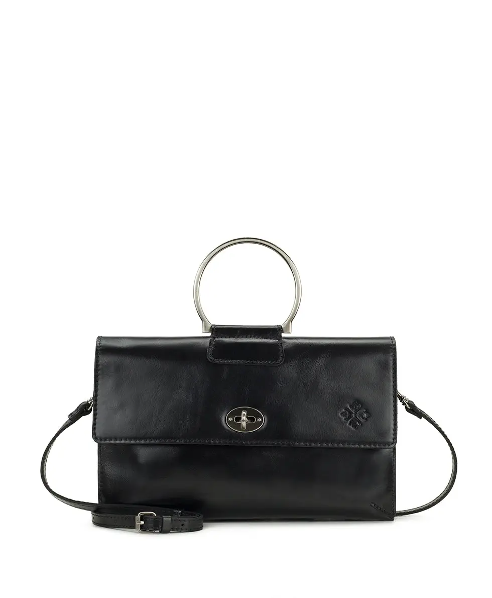 The Belvi's distinctive envelope shape exudes timeless elegance, while the round signature metal top handle adds a modern twist, making it a standout bag for any occasion. With built-in card slots and two main interior compartments, this bag is an all-around perfect choice for your day-to-evening needs.