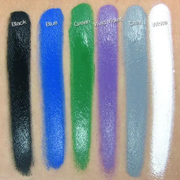 Ben Nye's Cream Color lives up to its reputation as a standby for demons, aliens, monsters, etc. It applies evenly and fairly easily with a makeup sponge and a blotting motion -- smearing or brushing movements do disturb it but that can be worked around -- and the colors combine with each other and other cosmetics well (I used a blue creme color mixed with a purple eyeshadow for a nice blush color for a blue demon, for example.) The colors on the website are mostly accurate but it would be great to see a swatch test as they don't seem to exist anywhere on the internet! Make sure to seal the paint!