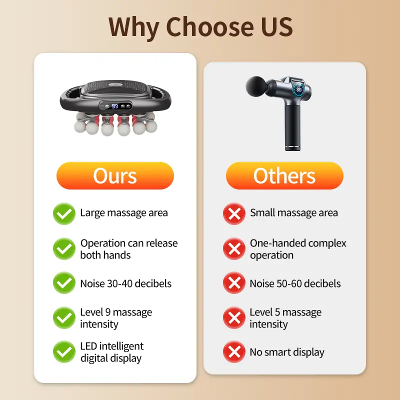 With 9 operating modes and 30 adjustable intensity levels, this massage device allows users to customize their massage experience according to personal preference. The top-mounted massage head is designed to target different muscle areas comfortably.