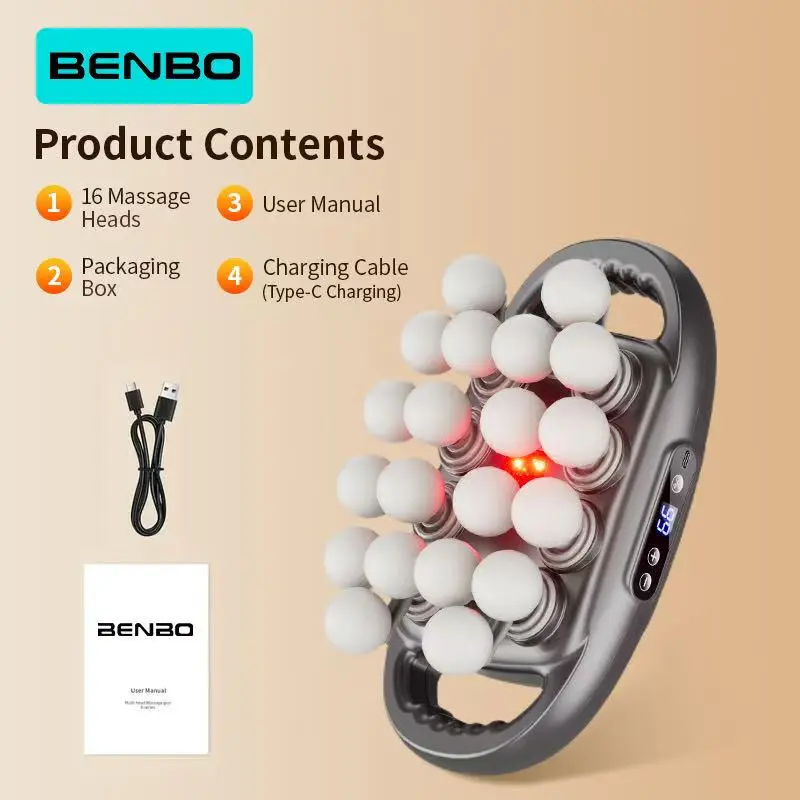 BENBO 20-Ball Massage Gun with 30 Levels & 9 Modes, Quiet Muscle Massager for Back, Shoulders, Legs & Feet, Adjustable Intensity for Daily RelaxationBENBO 20-Ball Massage Gun with 30 Levels & 9 Modes, Quiet Muscle Massager for Back, Shoulders, Legs & Feet, Adjustable Intensity for Daily Relaxation
