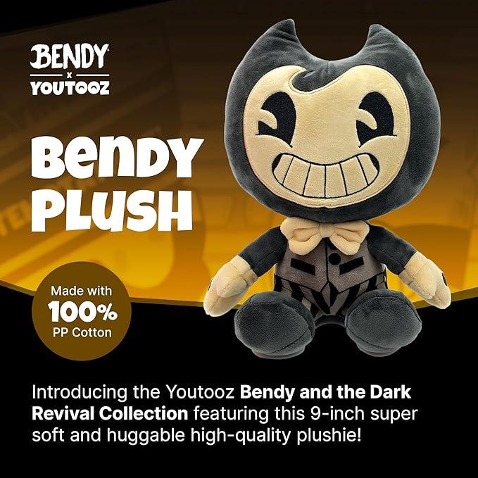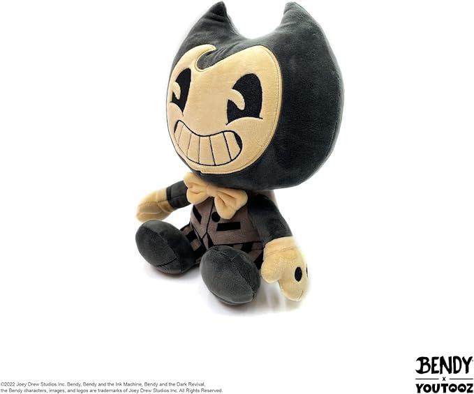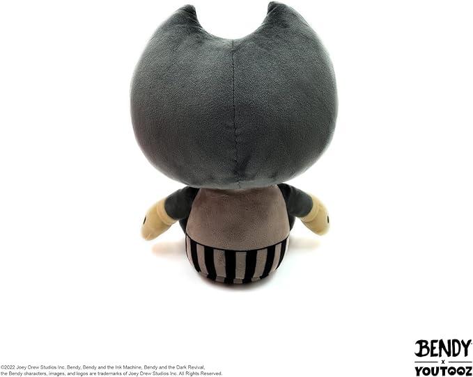 The mischievous little Bendy oozes into a new 3d form as this immaculate plush! Sat at 9 inches tall, his big black eyes stare at you happily above a wide toothy smile as his round head comes together at two points and drips down in a ‘fringe’. Ever stylish, he wears big white gloves on each hand and a sleeveless vest that matches his long pinstripe pants. This plush is packed to the seams with 100% PP cotton and is made of terrycloth and normal and sublimated minky materials, absolutely perfect for cuddling or being a mischievous guide!