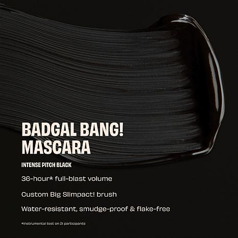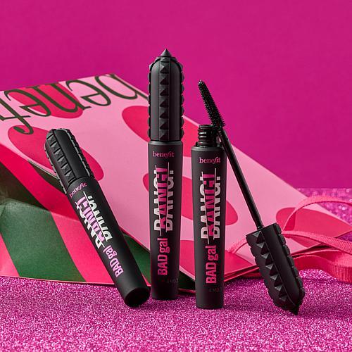 Benefit Cosmetics BADgal BANG! Mascara 3pk with Gift Bag What It Is You don't have to be in your villain era to embrace BADgal beauty. (But if you were, we'd totally support you!). Besides, who doesn't love a little drama? An intense pitch black lash that's all volume, no weight? Oh, yeah. With BADgal BANG! volumizing mascara, every swipe lays on 360 degrees of volume.    What You Get (3) .3 oz. BADgal BANG! Mascara Holiday Gift Bag What It Does Contains Pro-Vitamin B5 Gravity-defying formula that contains lightweight aero-particles Dermatologist tested Formula does not contain parabens, isopropyl alcohol, latex, sulfates or talc Water-resistant and smudge-proof Consumer Perception Survey In a consumer perception survey of participants after using for a week: 90% agreed they saw dramatic increase in the look of volume 94% agreed it instantly lifted the look of their lashes 92% agreed it lengthened the look of their lashes   How to Use Wiggle brush from base to tips. Use quick strokes to build volume. Apply to upper and lower lashes for a BANG!