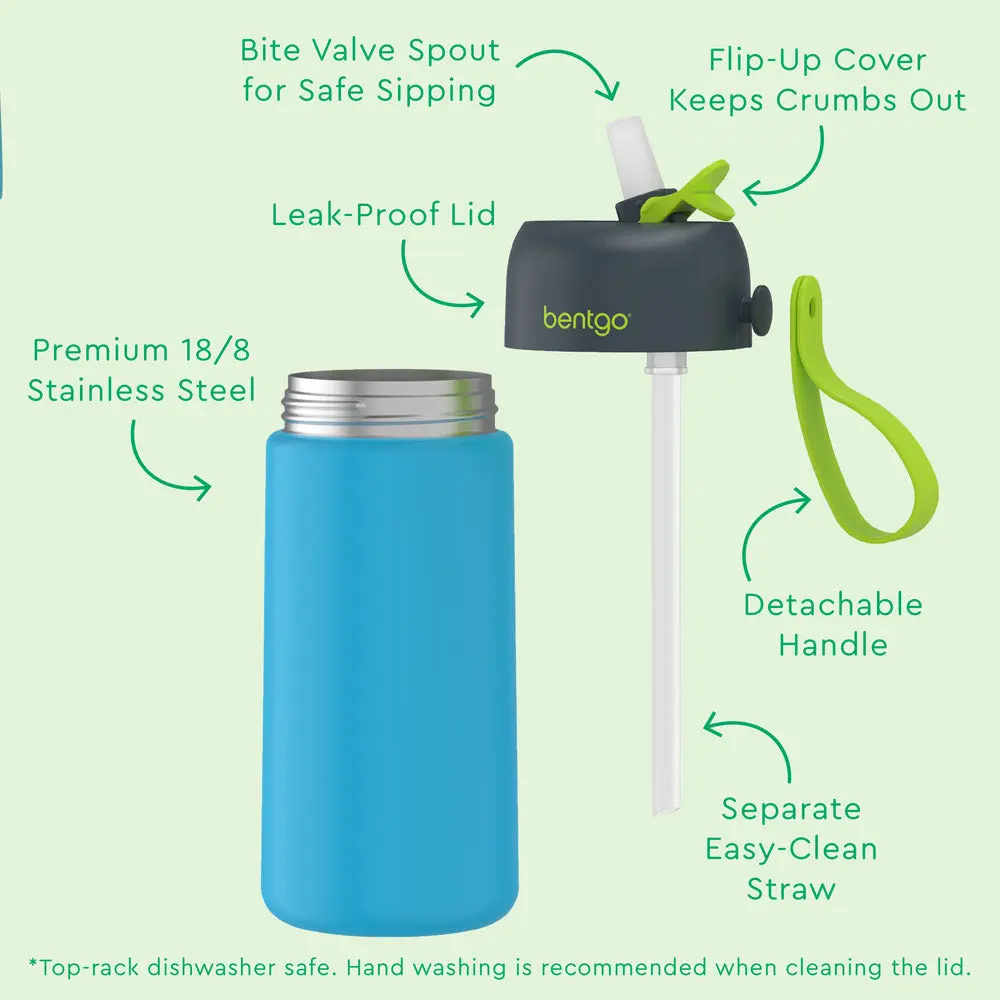 Enjoy refreshingly cool water on-the-go with the Bentgo Kids Stainless Steel Insulated Water Bottle Set.