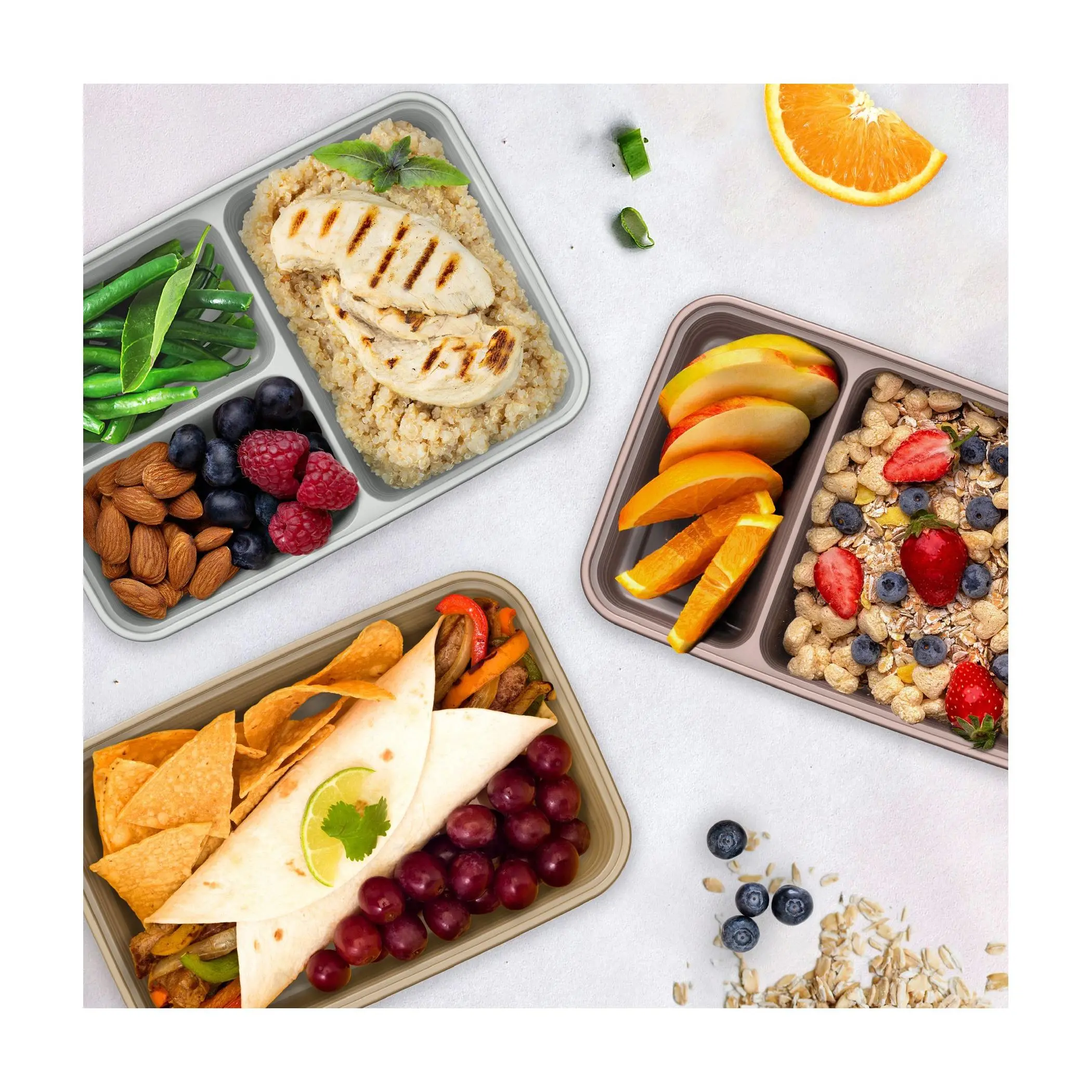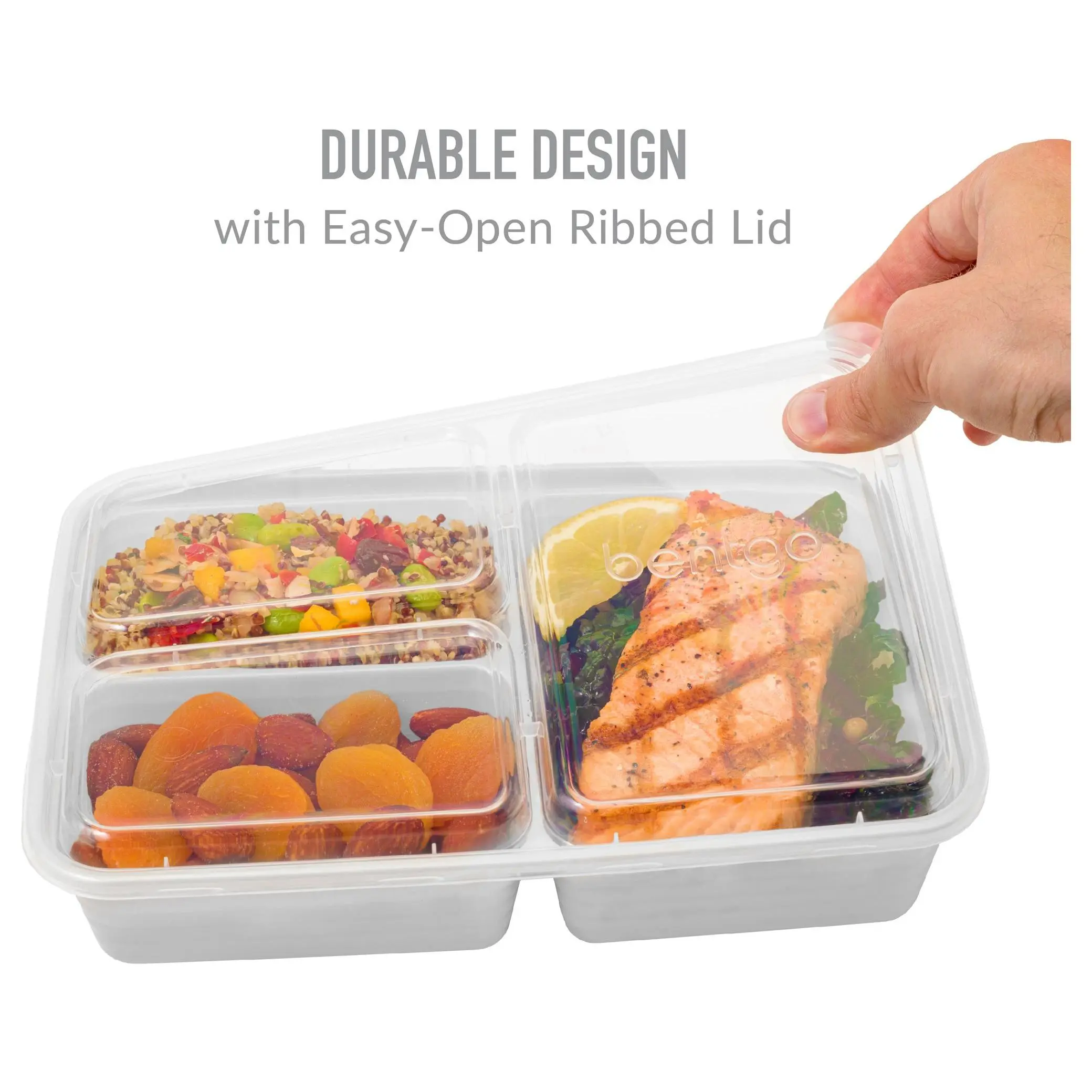 ·Includes 10 one-compartment 4-cup trays, 10 two-compartment 3-cup trays, 10 three-compartment 4-cup trays, 30 lids, and a meal prep eBook