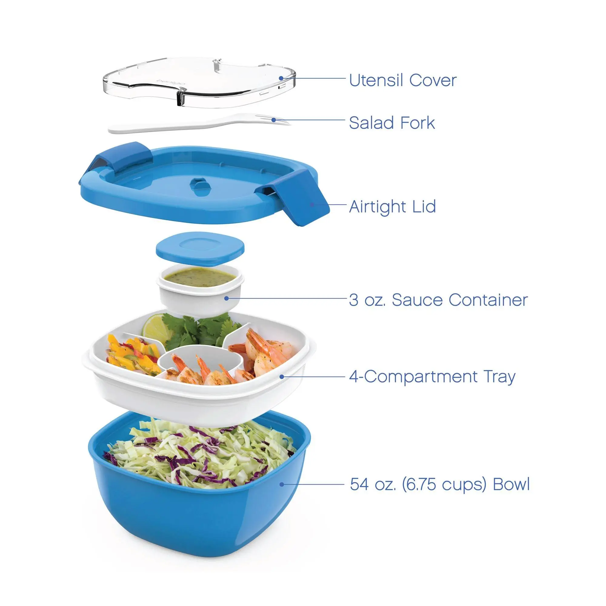 ·Includes 54-oz bowl, tray, 3-oz sauce container, lid, fork, and utensil cover