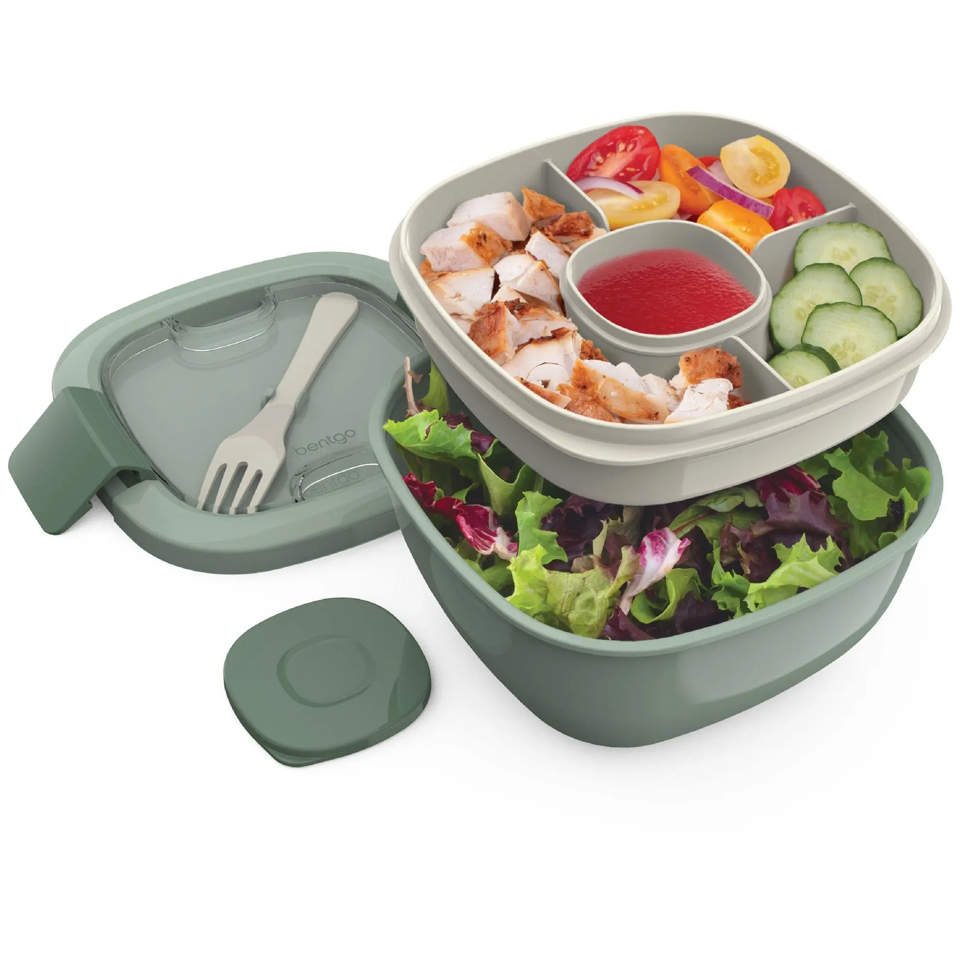 Bentgo makes eating fresh and healthy salads while on-the-go easier than ever. This all-in-one design offers the perfect solution for mess-free transport of your greens, salad toppings, and salad dressing, so you can enjoy a delicious and nutritious salad at school, work, on a plane, at the park, or just about anywhere. From Bentgo.
