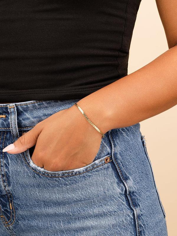 Introducing the Bentley Chain Bracelet. This exquisite bracelet features a delicate chain that will elevate any outfit, making it the perfect everyday accessory for the sophisticated and exclusive individual. Add a touch of luxury to your ensemble and make a statement with this must-have piece.