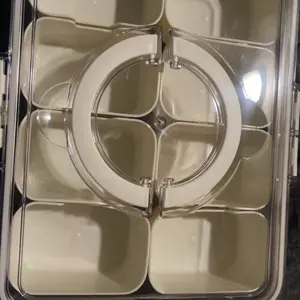 Love love love! Use it all the time for long car rides!! Love the cups are removable as I put chips and crackers in that section then dips, candies, veggies in the cups to keep them sectioned off. The lid has a nice clasp on it to keep them sealed. All moms need one, or anyone I take it with me even