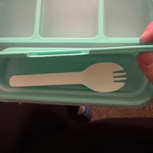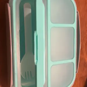 I ordered this also in pink color. My only complaint is that the compartment that holds the fork is a little difficult to open. Well made and durable. Can be used for snacks, as a container for money, hair accessories or jewelry and a great way to pack for vacation.