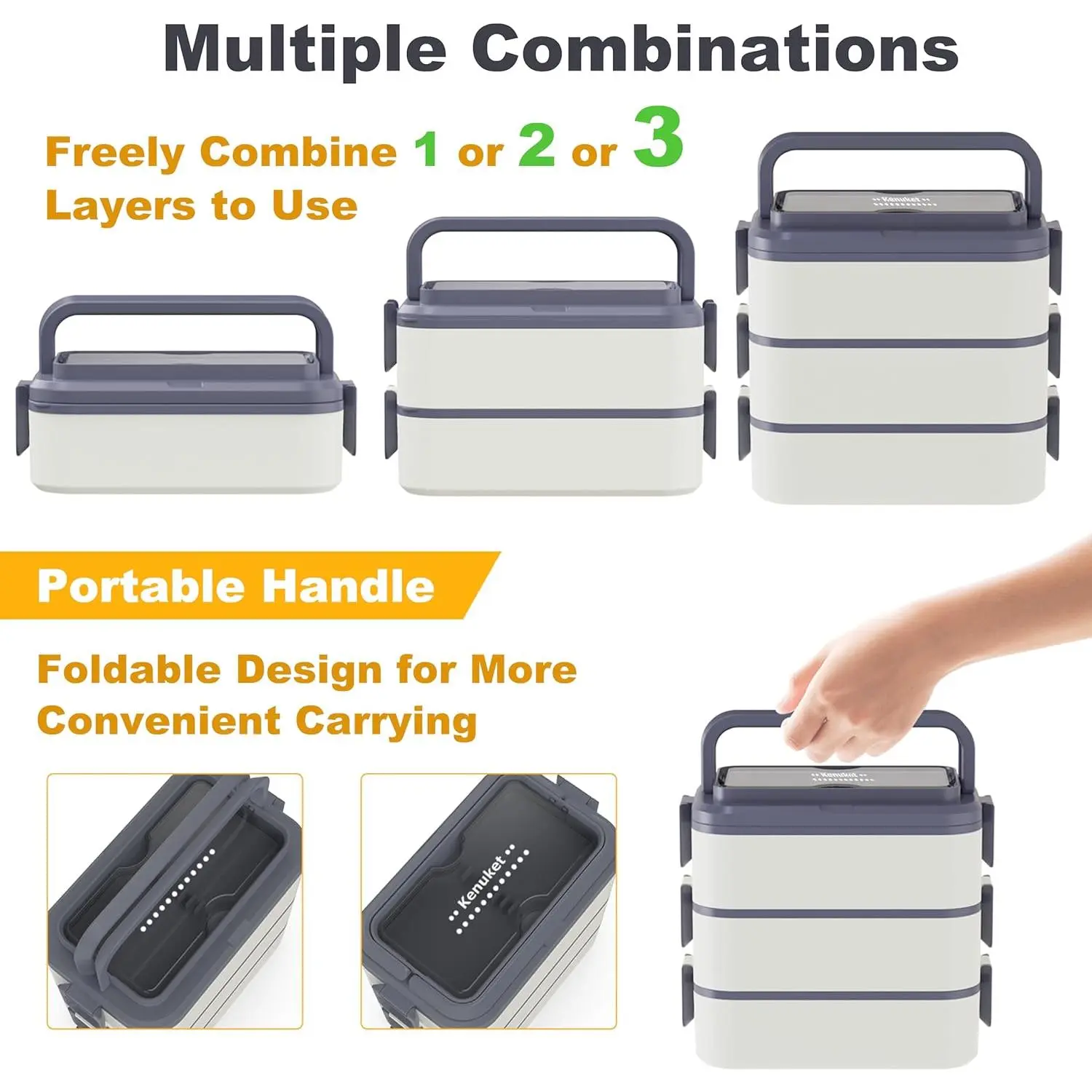 【Leak-proof Design & Durable Clips】Each layer has a sealed lid and a special design groove for better sealing. The durable locking clips on both sides can effectively prevent the leakage of liquids and food. No worry about the lunch overflowing or the lunch box splitting in your lunch bag causing all the mess. Tip: Hold the bottom of the clip with your fingers and apply force to open the clips more easily.
