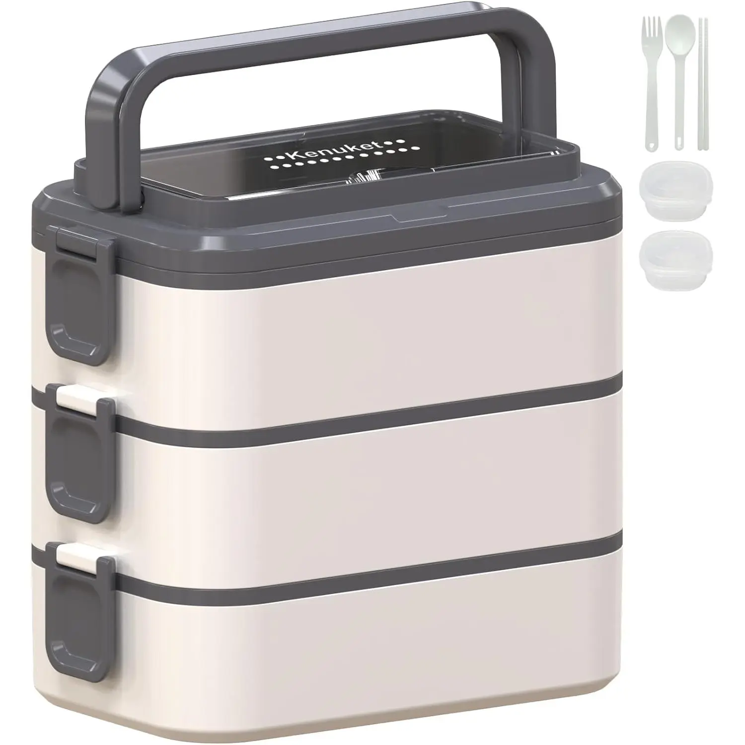 【All For Your Needs】We provide two removable dividers and two sauce boxes to diversify your meal for a good appetite. The stylish portable lunch boxes are perfectly designed for packing healthy lunches for adults, teenagers, and children. Suitable for Age: Over 7 years old. Package Includes: 3-layer bento box x 1, fork x 1, spoon x 1, chopsticks x 1, dividers x 3, and sauce box x 2.