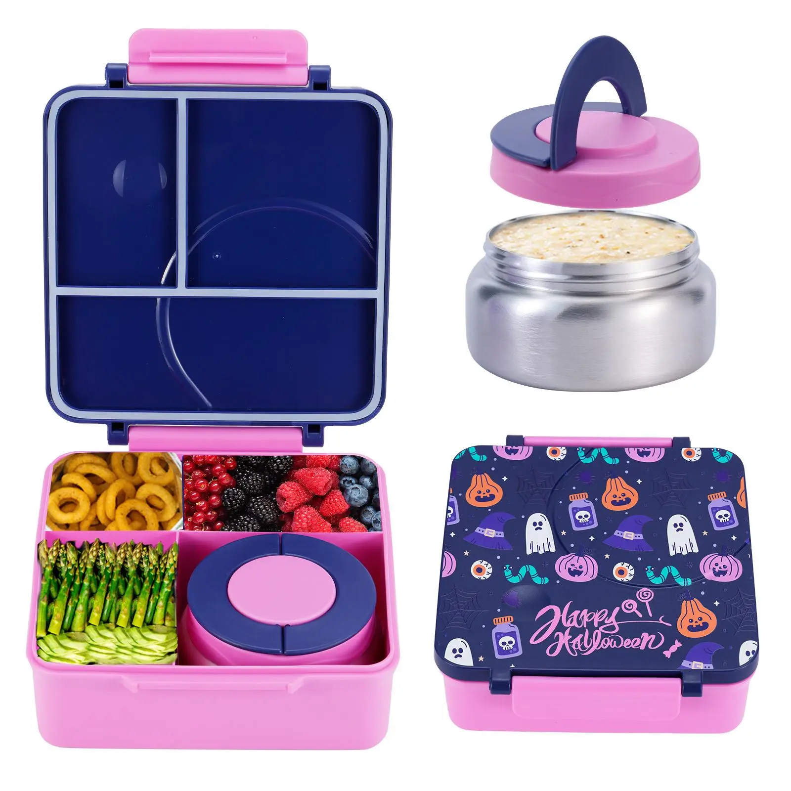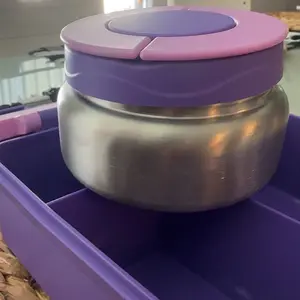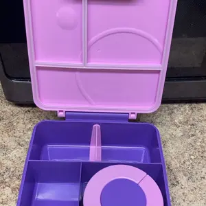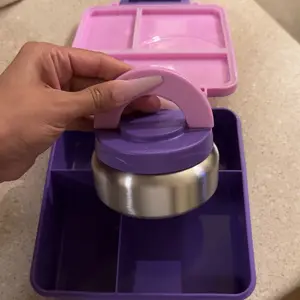 Besides the price what I love most is that it fits well inside a traditional lunch bag. I didn’t have to purchase anything new to accommodate this box. The warming canister is spill proof and way to open just as described. The color is a beautiful shade of purple as pictured. My daughter loved it.