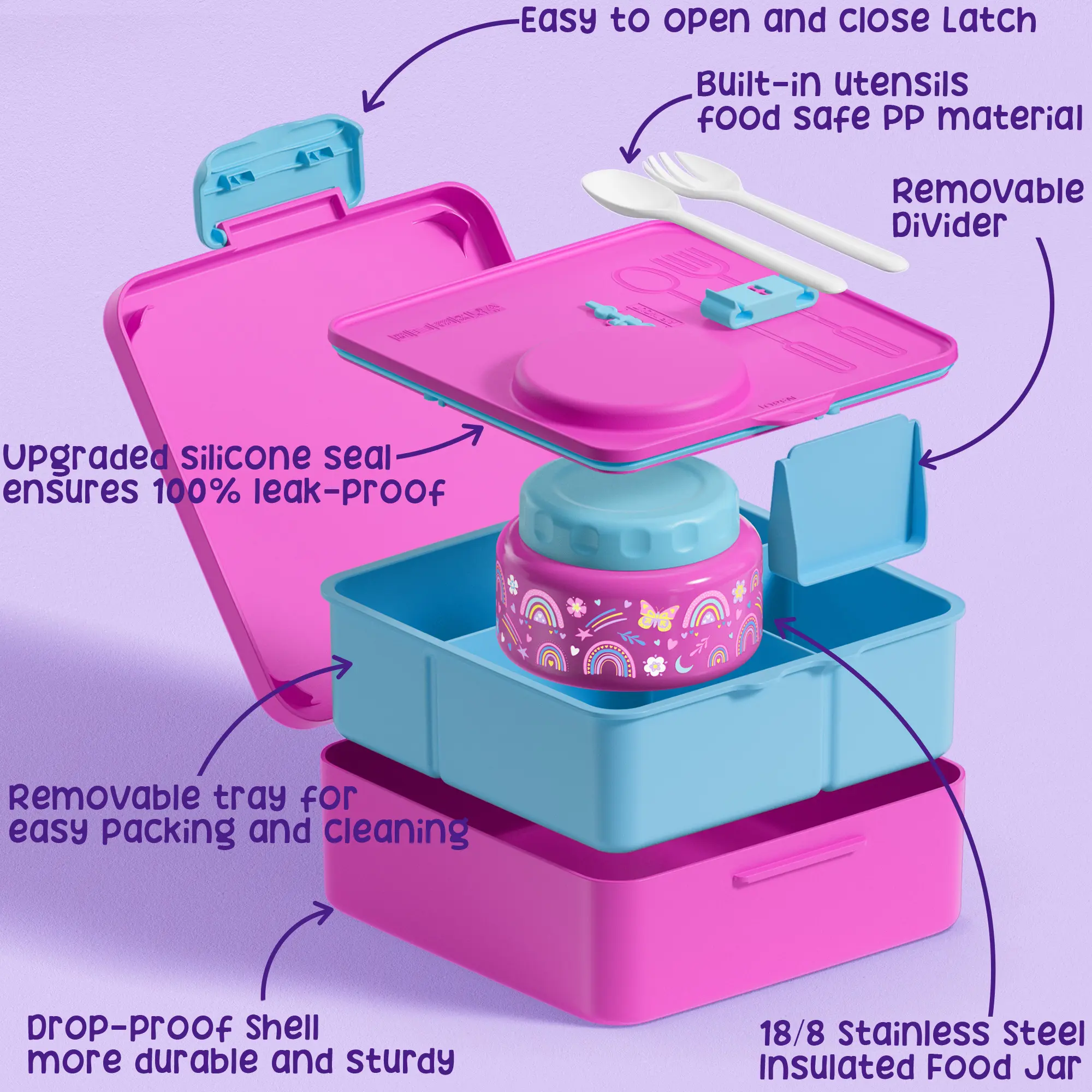 This lunch box set features a spacious 60 oz food tray, which can be customized into 3 or 4 compartments using the removable divider. It’s perfect for packing a well-balanced meal with a variety of food options kept neatly separated — great for school, office, travel, or everyday use.