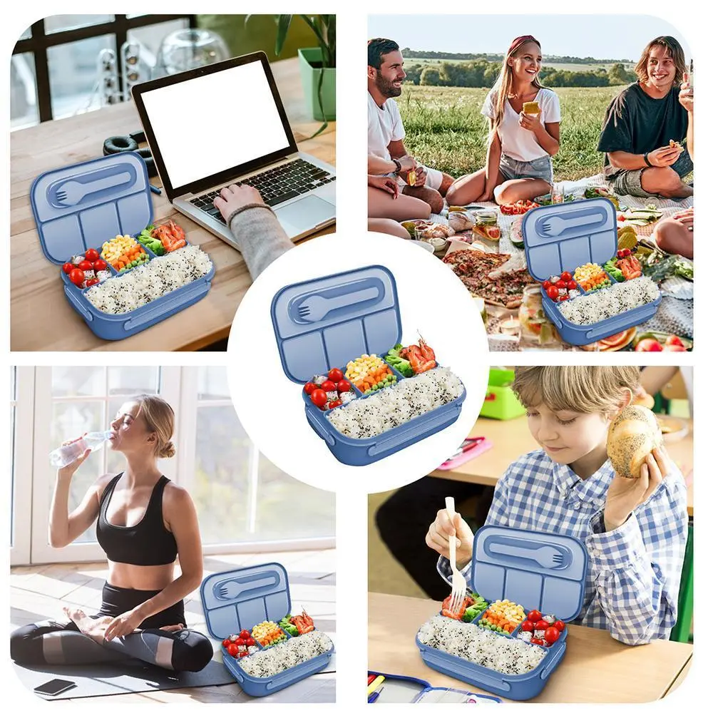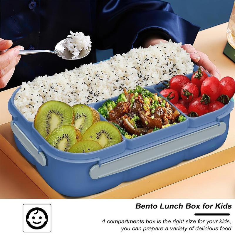 Convenient Lunch Box - The bento lunch box has 3 compartments, keeps food separated and no-mixed tested. Removable food tray design make it easy meal prep and easy clean up. Fork and spoon&Cutter included and has lid for conserve them. Totally, this lunch box is suitable for kids and adult to take the food out.