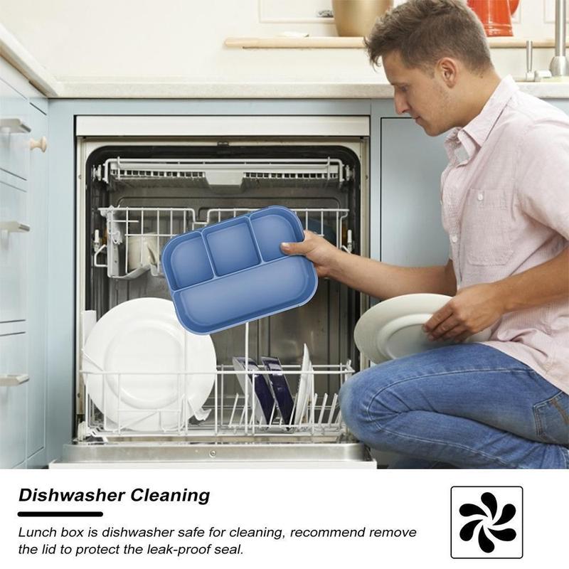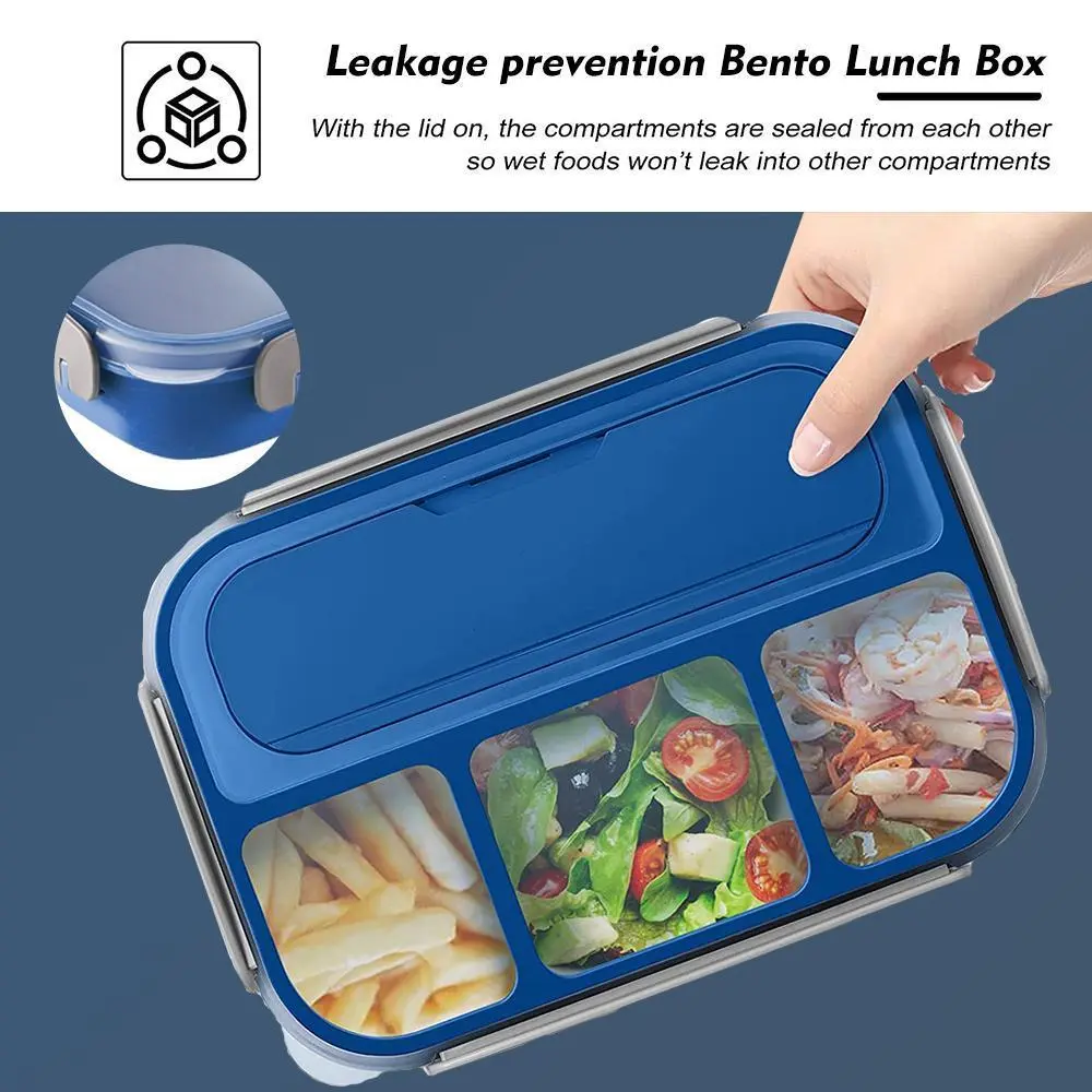 2. Leak Proof Design Bento Lunch Box: The lids are airtight and leak-proof, Silicone gaskets protect each compartment, making compartments not leak into each other. Seals well and keeps food in proper compartments, so there's no worry about food spillages.