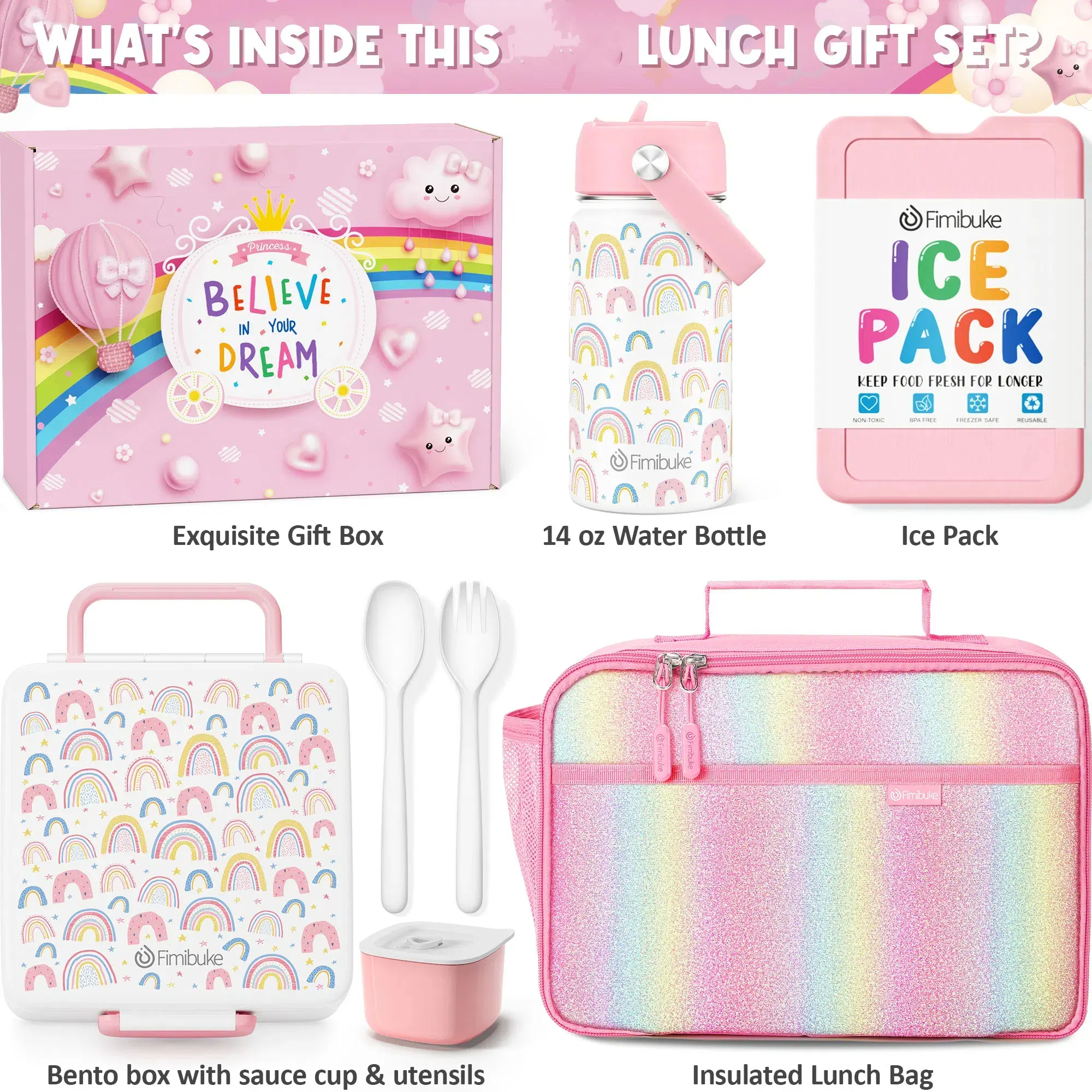 Fimibuke school lunch set is a perfect choice for anyone who are looking for an ideal all-in-one gift box making school lunch or snacks packing and carrying even easier! Perfect for your lunch at home, a playdate, or a fun outing.